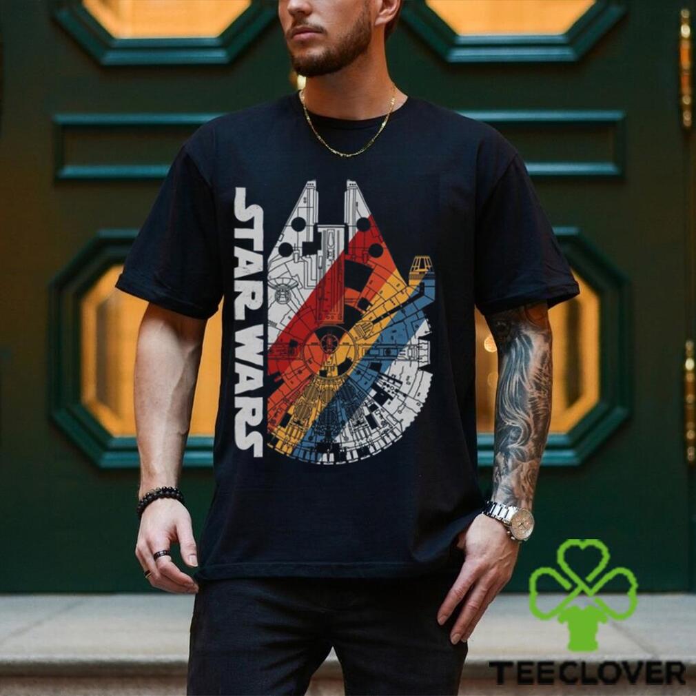 You see, Christmas Eve is really the Retro Disney Star Wars Shirt Millennium Falcon Wears Logo Graphic T Shirt Galaxy’s Edge Day Tee Celebration Unisex Sweatshirt when my mom’s sisters and brothers would all gather in South Boston with their kids (My cousins of course.) Since they too were teens like myself back in the day, they all did their own thing on Christmas morning — But the one thing they didn’t want to do was leave their gifts after opening them. So Christmas Eve became more important to us as a whole to come together, celebrate and then visit midnight mass at the local church before going home. By the time I got home, it was after 1am, so I guess it was really Christmas morning if you want to get technical about it. The gifts were promptly opened and I was in bed no later than 3am to sleep most of the morning in peace. Now with two kids of my own, I will be getting up Christmas morning to greet the day and watch their faces. Mainly because Santa Claus is still important to them and he only visits on Christmas Eve when you’re asleep as all know.