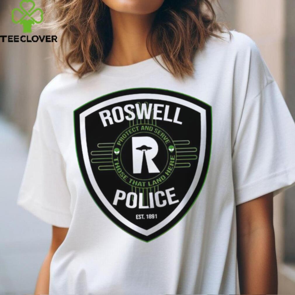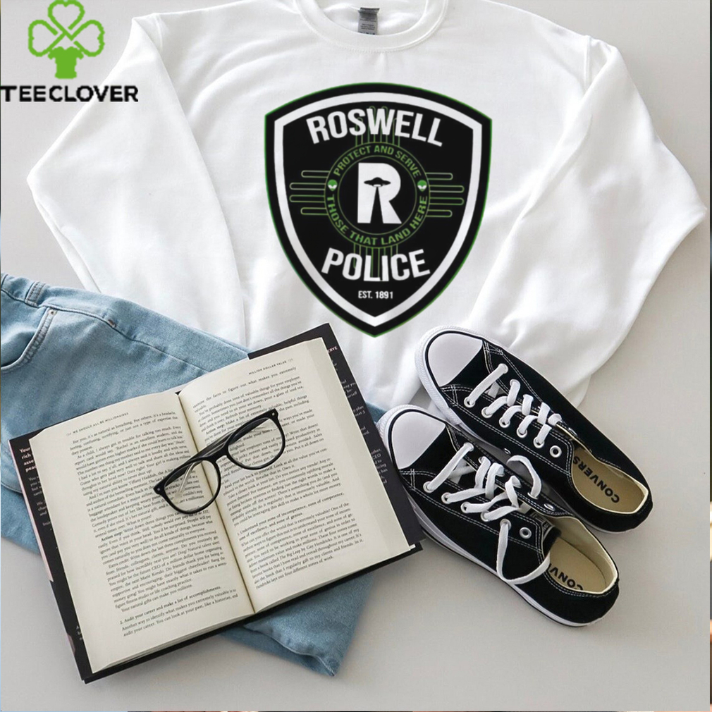 No! It’s much too early for Roswell police est 1891 protect and serve those that land here shirt . I want to enjoy this fall (although it seems that fall has decided not to visit us this year) and each holiday as it comes. One year, ages ago, I put up the Christmas tree on Thanksgiving weekend and by the time Christmas came around, all the decorations were dusty and I was sick of looking at it..lol. That was a good lesson. Christmas, for me, is sparkling snow, pine trees (not maples turning gold and red) and a very special time, especially if you have family (cherish them because some day they will be gone). It’s a time of selflessness and love and that “Christmas spirit” which is incredible which takes hold of you.