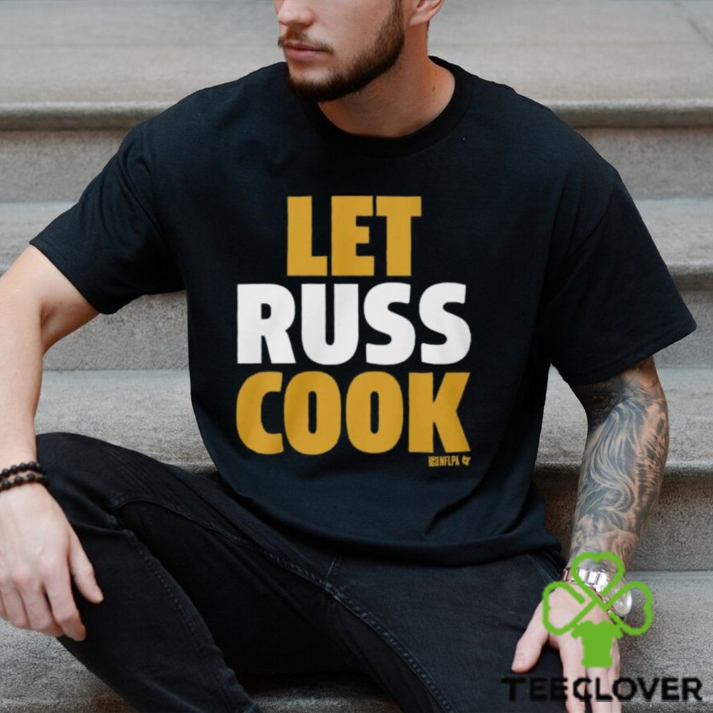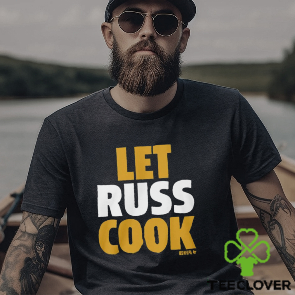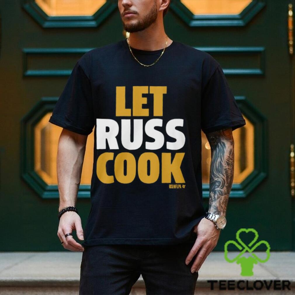 The English term Christmas (Old English, Cristes maesse) is actually of Russell Wilson Pittsburgh Let Russ Cook Shirt recent origin: the feast day only began to be widely celebrated with a specific liturgy (the Cristes maesse) in the 9th century. The earlier term Yule, from the Germanic jōl or the Anglo-Saxon geōl, referred to the feast of the winter solstice, and made no mention of Christian church liturgy or practices. On Christmas Day, the Church traditionally celebrated three Masses. The first of these took place at midnight and celebrated of the actual birth of Christ. None of the contemporary Christmas customs have their origin in these liturgical affirmation (or masses), and most are of a much more recent date. The exchange of gifts originally took place in the early hours of the 25th when people returned home from the first, midnight mass. When it became customary to open gifts later in the day, the times of many church services were altered – another example of how far from the idea of the liturgical ‘Cristes maesse’ the holiday has come.