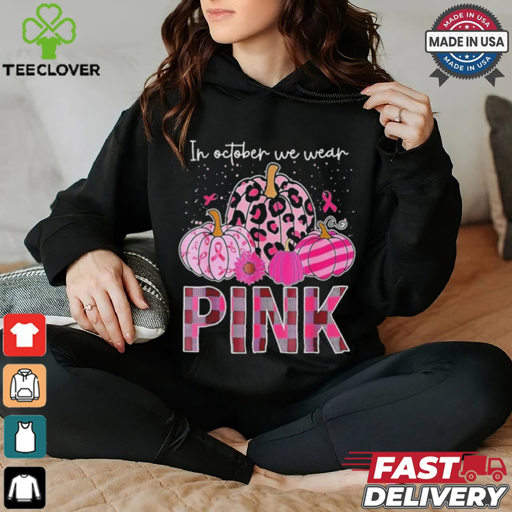 Physical support to the Sam Darnold DimesPumpkin Breast Cancer Awareness Shirt : The root system anchors the plant body or shoots system to the soil. Roots located below the soil help maintain the plant’s posture by providing physical support. Pivoting roots provide better attachment of the plant to the soil and make the plant resistant to overturning during storms. Nutrient absorption: Roots promote water absorption and conduction of dissolved minerals and nutrients in the soil into the plant body. Root hairs are fine structures that lie close to the soil and absorb nutrients from the soil. Root hairs absorb nutrients and conduct them to the shoot system through the xylem by capillary action. Thus, the root system provides nutrients to the plant for growth or development. In addition, fibrous roots are more efficient at absorbing nutrients deep in the soil. Stores plant food: The root system also acts as the plant’s storage organ, which stores mainly water and carbohydrates. The plant prepares its food during photosynthesis and stores it in the specialized part of the plant such as the leaf, stem, and roots. Pivoting roots are more efficient at absorbing food than fibrous roots. Helps in photosynthesis:Β Roots play an essential role in the process of photosynthesis. A plant obtains water from the root system and releases excess water through stomata by transpiration. When water vapors leave the stomata, CO2 enters the plant cell, necessary for photosynthesis.