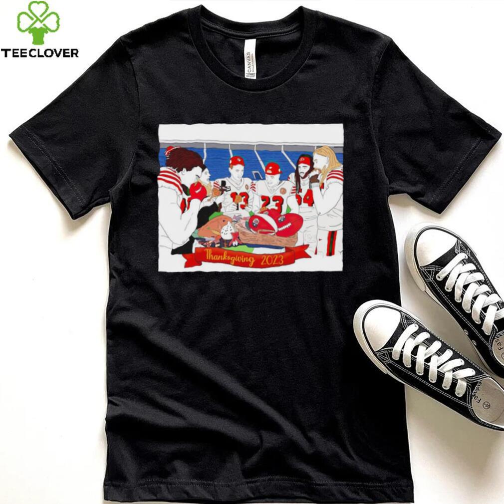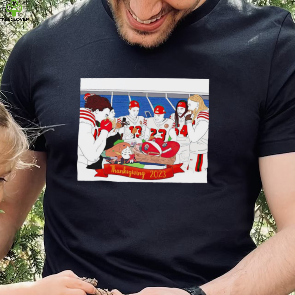 San Francisco 49ers cartoon party Thanksgiving 2023 shirt