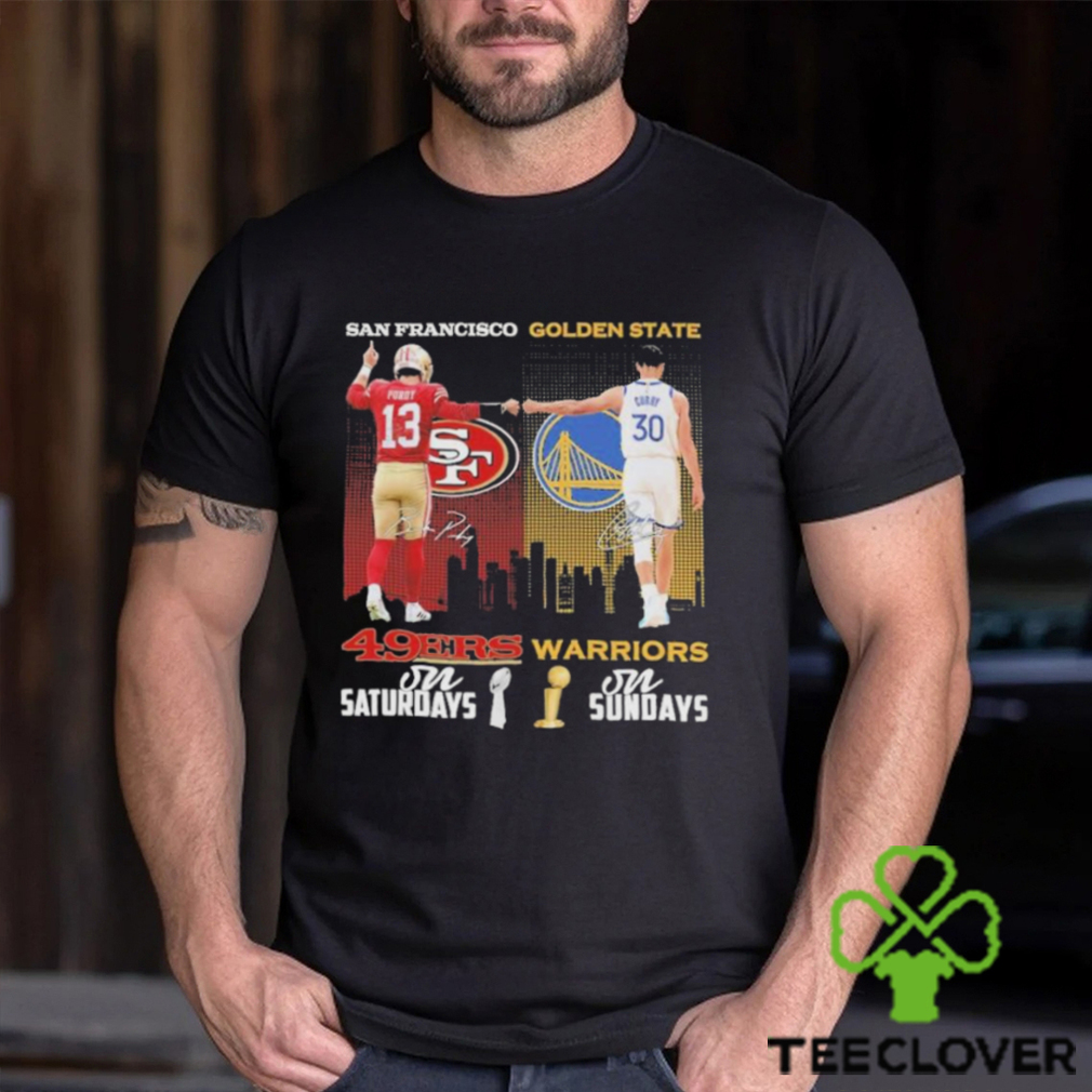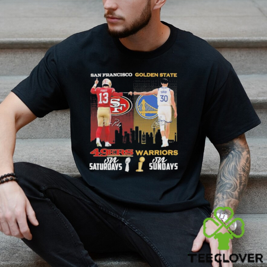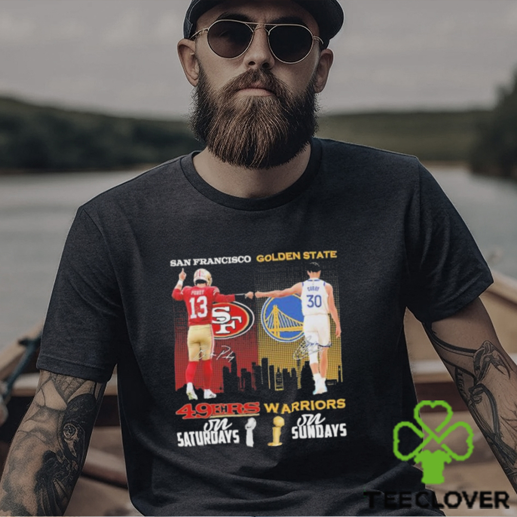 ()San Francisco 49Ers on Saturdays vs Golden State Warriors on Sundays Purdy and Cury Signatures Shirt hoodie, tank top, sweater and long sleeve t-shirt