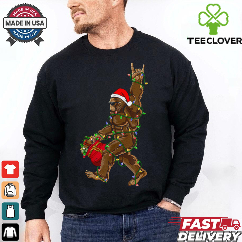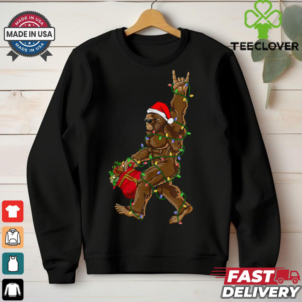()Santa Bigfoot Christmas Lights Rock Funny Sasquatch Believe T Shirt Recovered hoodie, tank top, sweater and long sleeve t-shirt: best style for you