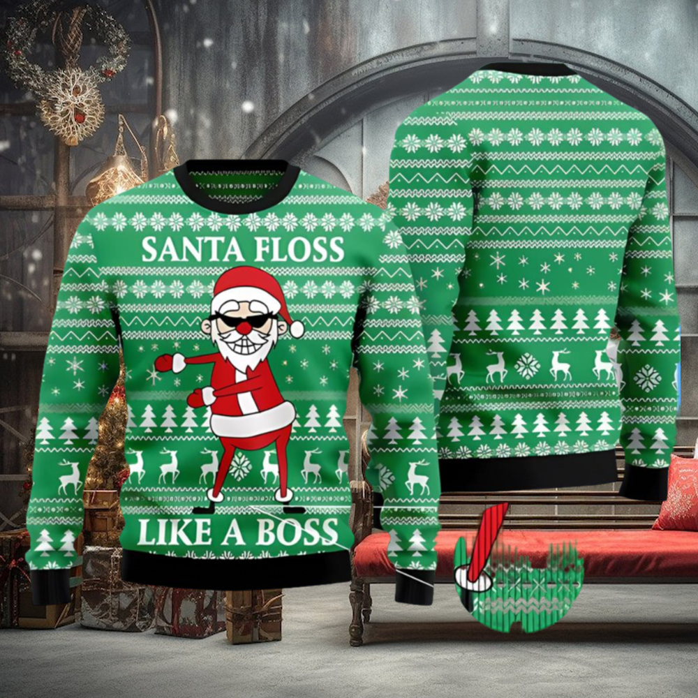 Best Santa Floss Like A Boss Ugly Christmas 3D Sweater