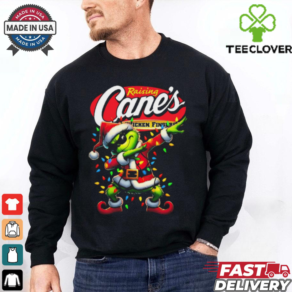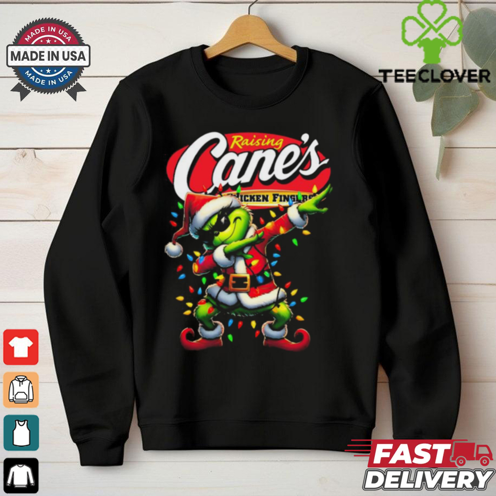 ()Santa Grinch Dabbing Raising Cane’s Chicken Fingers Merry Christmas Light Shirt hoodie, tank top, sweater and long sleeve t-shirt: best style for you