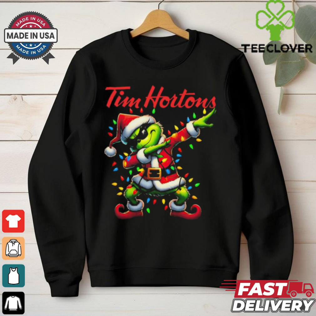 ()Santa Grinch Dabbing Tim Hortons Merry Christmas Light Shirt hoodie, tank top, sweater and long sleeve t-shirt: best style for you