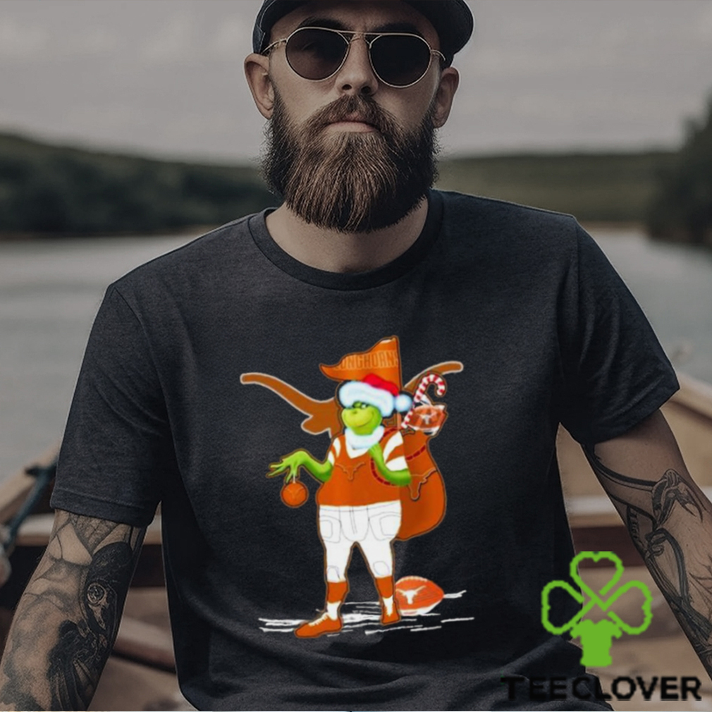 Many of the Santa Grinch Texas Longhorns Gift Christmas Shirt Christmas customs were inherited from older Winter Solstice celebrationsโincluding greenery indoors, feasting and gift-giving. It seems quite likely that the celebration of the birth of Jesus was scheduled at that time in order to piggy-back on existing holiday observances. Halloween is very directly descended from the old Celtic feast of Samhain, when the dead return to visit the living. Modern Pagans observe this and Beltane (May Day) as their major holidays, the Feast of the Dead and the Feast of the Living on opposite sides of the Wheel of the Year. Easterโs Pagan connections are suggested by its English name, Eostara being a Pagan Germanic Goddess associated with the Spring Equinox. The bunnies and eggs probably go back to Pagan times as well.