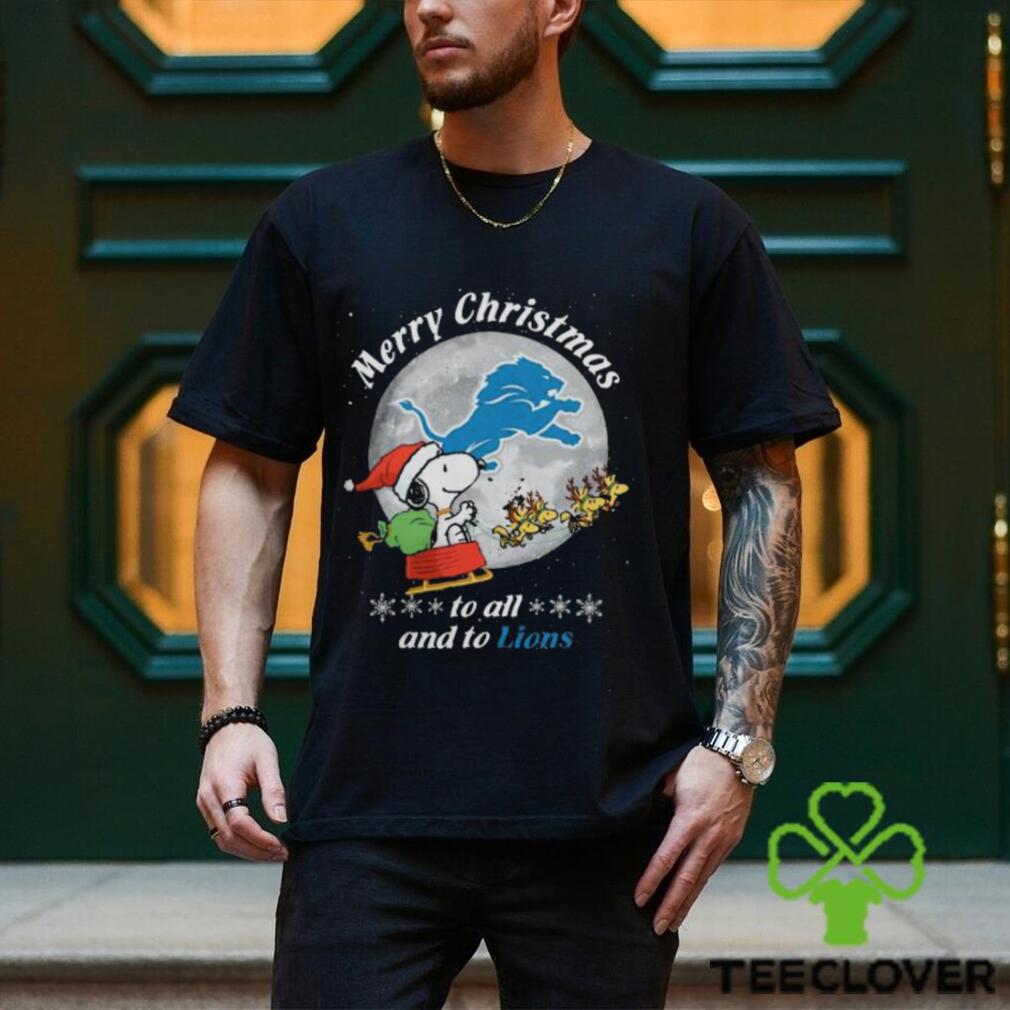 Santa Snoopy And Reindeer Woodstock Merry Christmas To All And To Detroit Lions Shirt