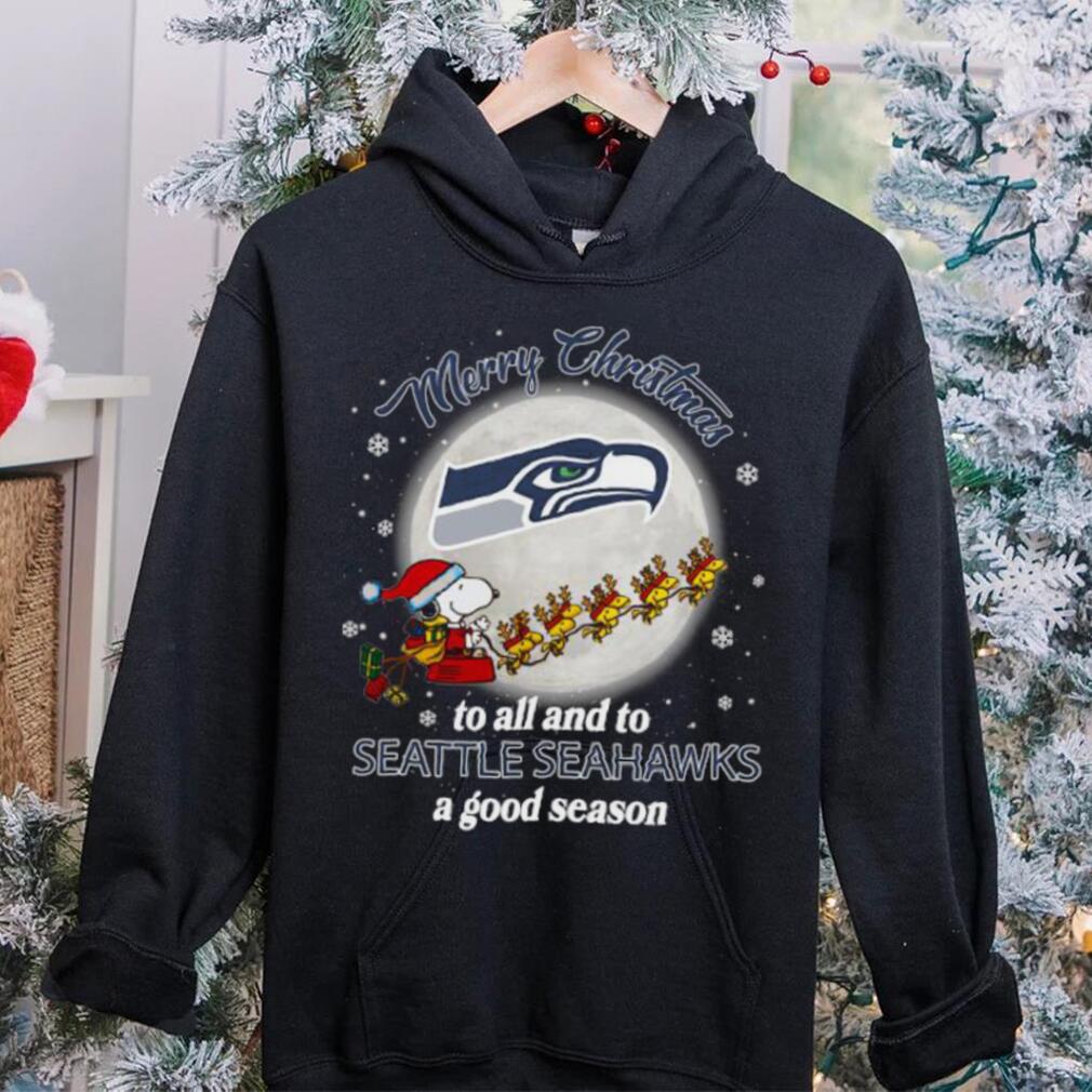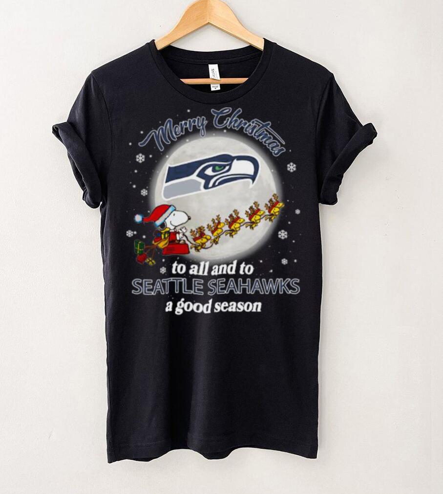 ()Santa snoopy and woodstock merry Christmas to all and to Seattle Seahawks a good season shirt