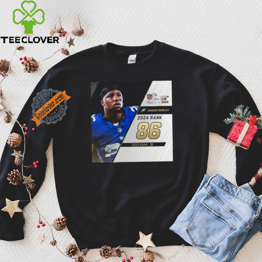 Dean gets to their motel and Sam’s dressed it all up, even though he spent much of the Saquon Barkley Rank 86 The NFL Top 100 Players Of 2024 T Shirt not wanting to celebrate. They share some jokes for the rest of the episode, clearly trying not to get teary-eyed or reminisce too much about their…well, mostly shitty lives. They share some presents, express some gratitude, drink some eggnog, and watch a game on TV. Smiling and enjoying each other’s company. I love this episode and it goes down as my favorite Christmas story because the writers did not hold back on making it bittersweet as fuck. These two poor sons of bitches have almost nothing at all – they’re sitting in a cheap motel, both their parents are dead, Dean is going to be dragged to Hell for eternity within the year, and the only reason they wake up in the morning to save other people is because they literally cannot do anything else now that they’ve been hunting for so long.