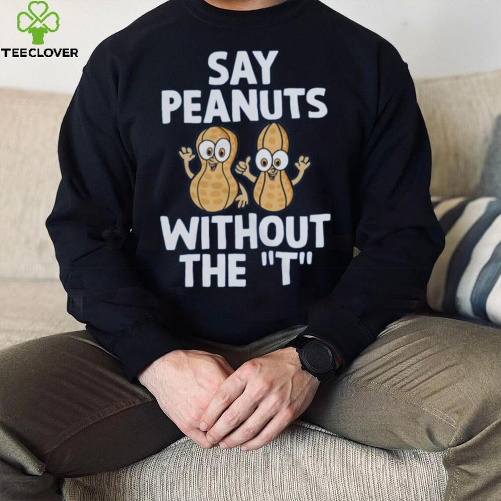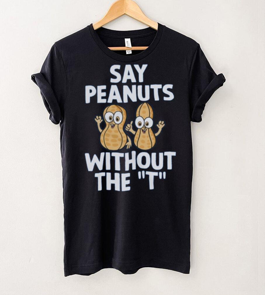 Every year she wrote a letter to Santa Claus asking for a Say Peanuts Without The T, Funny Shirt of things she knew would come to her only by a miracle. Though just 7 years old she knew She was lucky enough to end up in the orphanage though she has nothing a kid craves for. But every year she is disappointed by just a piece of cake and a little used frock as Xmas gift. She stopped believing in Santa and lost Xmas spirit ever. When she was 12 years old she realized the main thing she is missing and wished just one thing this Xmas.. Love. The next morning the patron of the orphanage comes to her and says โyou are adopted by a childless family. Please pack your things and be ready to meet them. โ Her voice dominated the Christmas Carols ever after that.