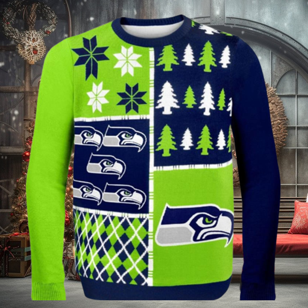 Seattle Seahawks Busy Block Nfl Ugly Christmas Sweaters