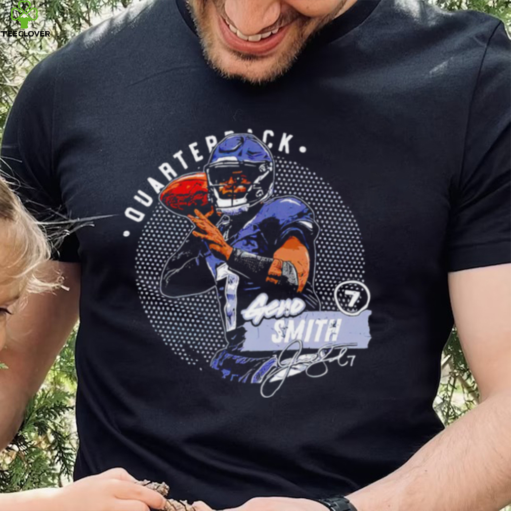 Seattle Seahawks football Geno Smith 7 player quarterback action pose signature dots shirt