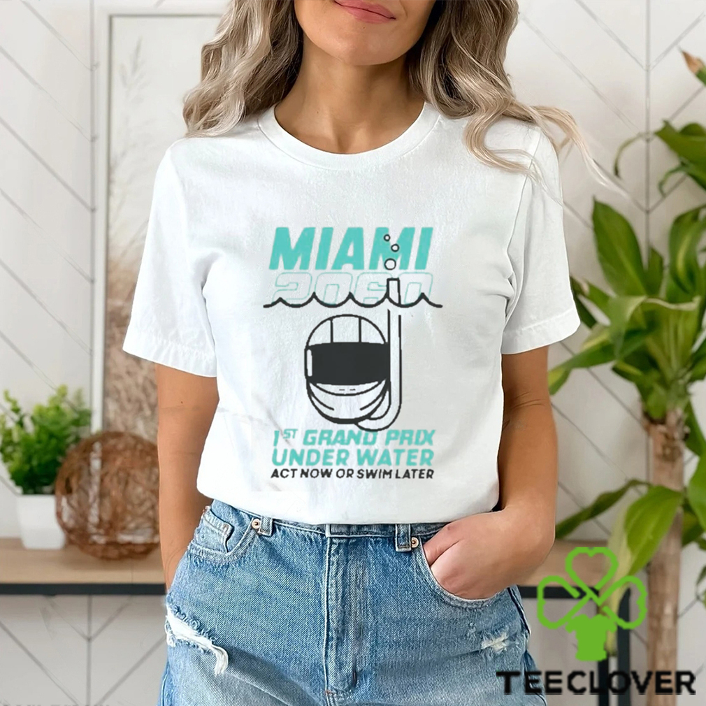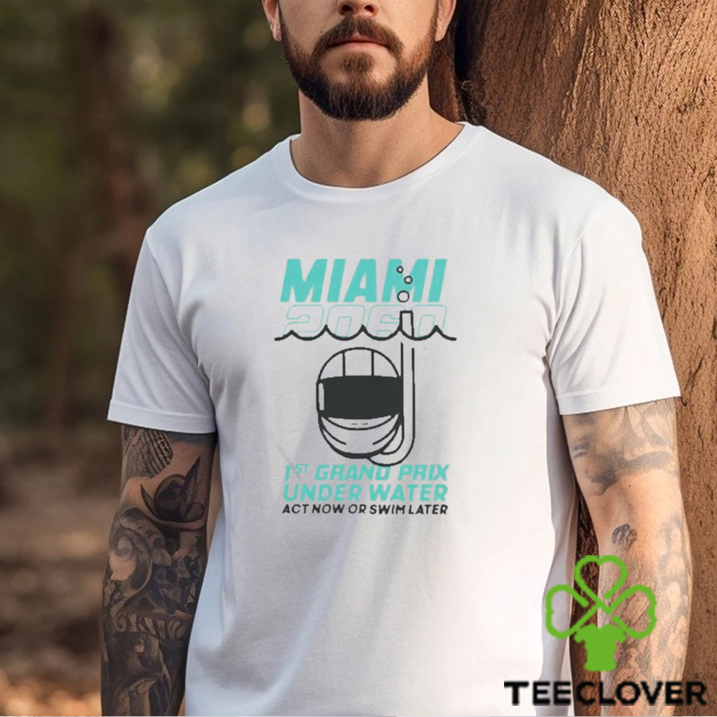 Sebastian vettel’s cheeky ‘Miami 2060′ f1 1st grand prix under water act now or swim later t shirt