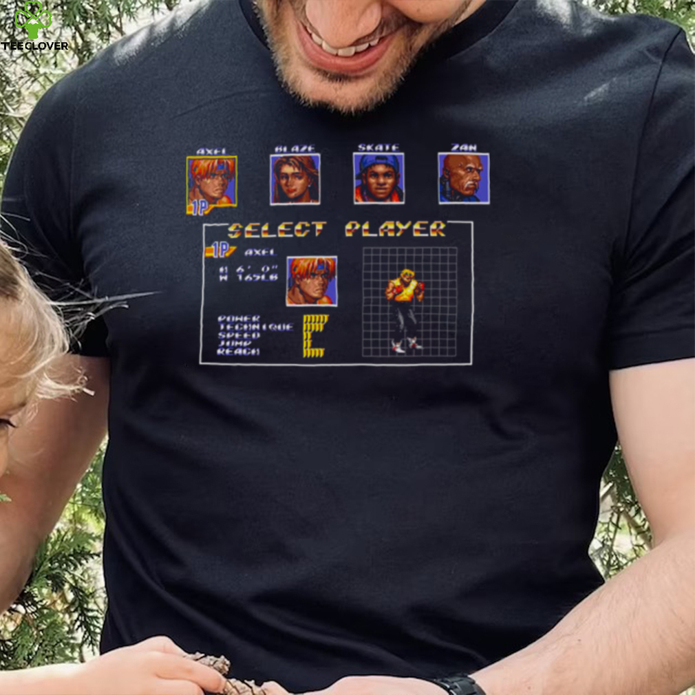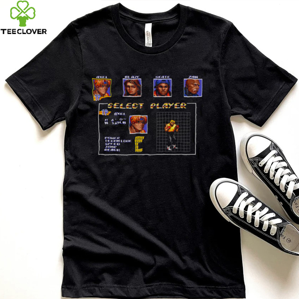 One class doesn’t have a Select Axel Streets Of Rage 3 shirt potential than another. Role-playing is orthogonal to class. Role-playing is about the story you create for your character, and you can create a compelling story for a character of any class. Some classes certainly have more obvious sexy story hooks than others. The Warlock, for example, gets her power from a pact with an otherworldly power. What power? How did this come about? How has it affected the Warlock’s outlook on life? You can scarcely avoid an interesting backstory when creating a Warlock! But you can do the exact same thing with any character of any class.
