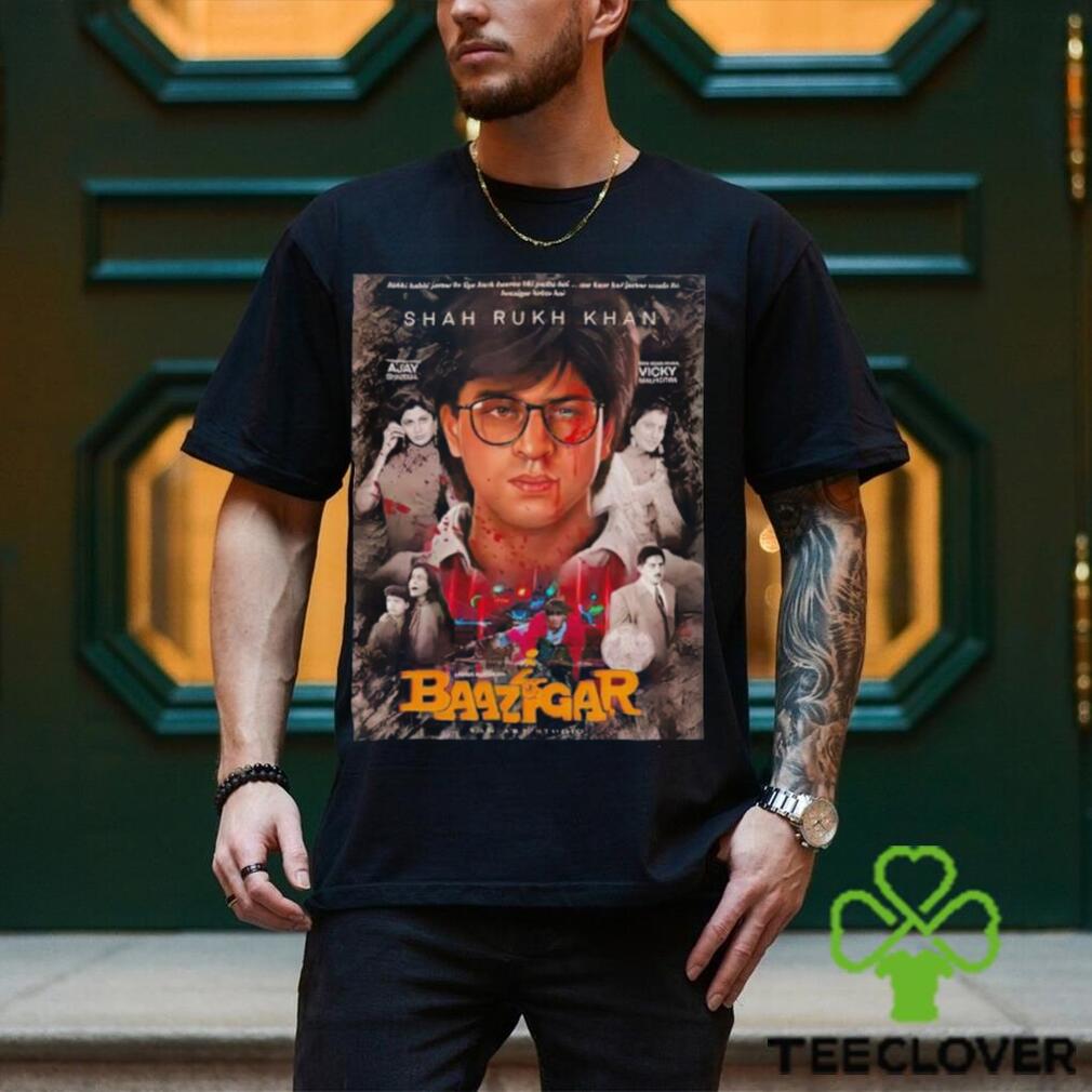For us, it is Christmas Eve. There are just two of Shahrukh Khan Baazigar Artwork picture shirt, as we have no children. When we were first married, we always went to my parents’ house on Christmas Day. All of us (my parents, me, my husband, brothers, SIL, nieces, nephew) would open our gifts and then have a Christmas dinner. My husband and I started a tradition of having a Christmas Eve dinner together, just the two of us, and exchanging our gifts to each other after dinner. After a couple of years, we switched from a Baptist church to a Methodist church that has a Christmas Eve service (the Baptist church never had a service on Christmas Eve or Christmas Day unless one of those days happened to be Sunday). The pattern for Christmas Eve then became church, dinner, gifts (and, for some years, a second late evening church service). Meanwhile, my mother finally had to admit pulling off a Christmas dinner was too much, and we went to finger foods or sandwiches. Then she decided that getting everything wrapped and ready by the 25th was too hard, and my brother and his family kept arriving later and later every year because they would spend the afternoon at her mother’s house 120 miles away, so the family Christmas get-together got moved to the Saturday after Christmas, then to the Saturday after New Year’s, then to the second Saturday in January. Christmas Day itself became a non-event. We still keep our tradition of having our dinner and gift exchange on Christmas Eve, and of course, the church service is still that evening as well. Christmas Day is now just a nice day off from work to relax.