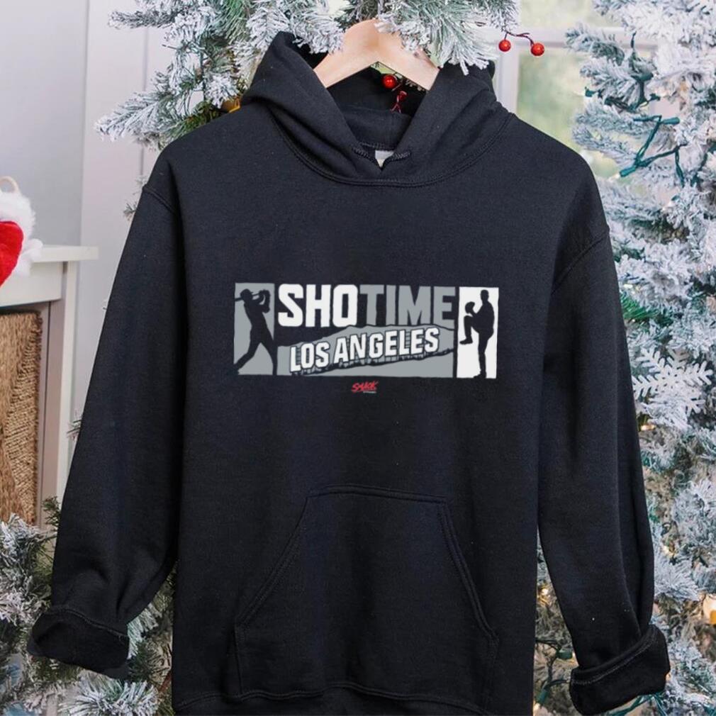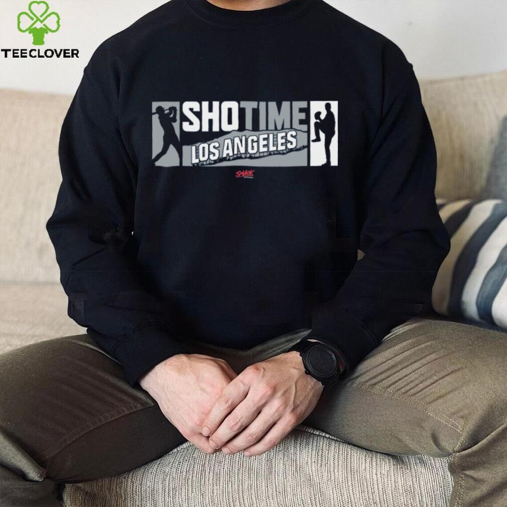 At the other outpost also all was finished. During this night we reached the Sho Time for Los Angeles Baseball T Shirt of the Tannu Ola and descended again into a valley covered with dense bushes and twined with a whole network of small rivers and streams. It was the headwaters of the Buret Hei. About one o’clock we stopped and began to feed our horses, as the grass just there was very good. Here we thought ourselves in safety. We saw many calming indications. On the mountains were seen the grazing herds of reindeers and yaks and approaching Soyots confirmed our supposition. Here behind the Tannu Ola the Soyots had not seen the Red soldiers. We presented to these Soyots a brick of tea and saw them depart happy and sure that we were “Tzagan,” a “good people.