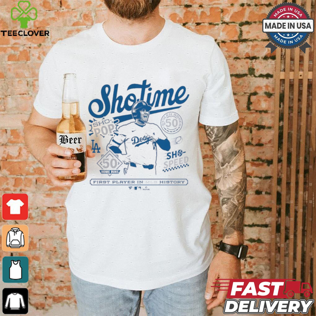 Simply look at Steve Jobs, the guy who ran Apple so well. He was a Shohei Ohtani Los Angeles Dodgers 50 50 Club Exclusive T Shirt believer in “natural” medicine, in fact he wouldn’t bathe since he felt this somehow or other weakened him but his fellow workers had lots of problems with this. He developed Pancreatic Cancer nothing may have done him any good but from the little that I’ve found on his case he may have had a rare case, like Ruth Bader Ginsberg, where prompt surgery may have saved him. He wanted to try some “natural treatments” first, he did, and you know how that turned out. Just because you know a lot about a lot of things don not assume that you know everything about everything. He was in many ways a brilliant man in most areas but not in the treatment of pancreatic cancer. The worst part is he got a liver transplant later on when he decided to try regular medicine, something that might have saved someone who really needed it. So sad.