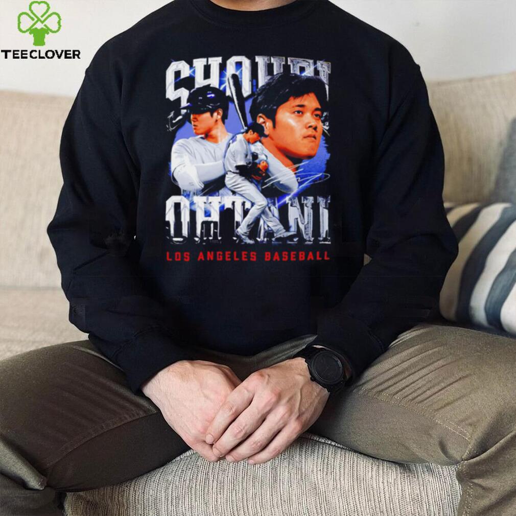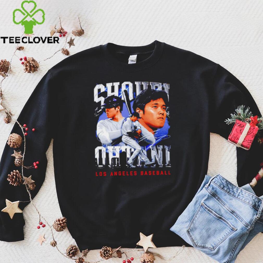 Around 11 AM, the Shohei Ohtani Los Angeles Dodgers baseball player portrait signature 2024 shirt arrived. Several large, police officers approached us. They told us that they were going to shut down the operation as it was causing a huge traffic jam. I got a brainstorm, I asked the officer that appeared to be in charge if I could have a word with him (Note, I was in my hippie mode at this time). He agreed. I said, βThese trees are free to anyone.β He said, βSo whatβ I said βthere are free to anyone, including the police department. You could pick up as many of the trees as you want and take them down to Watts (a very poor part of town) and give them away. Think of the PR you could get out of that.β The lights went on in his head and he turn around and talked to the other officers. I do not know what he said, but in a very short time, there were a lot more officers, but they were now directing traffic. Soon a large truck from the police department pulled up and they starting filling the truck with tress. They were already sending in an advance unit to prepare for the Christmas tree give away.