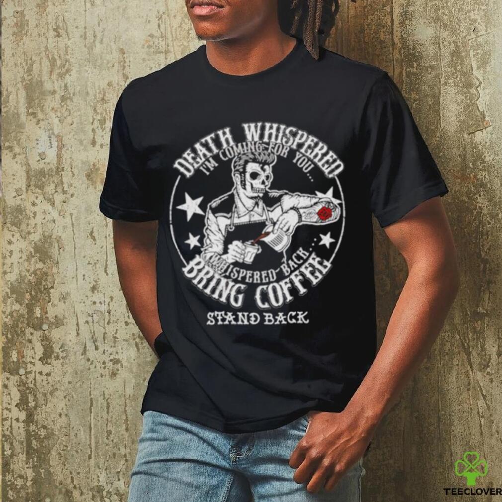 Best Skeleton Death Whispered I’m coming for you whispered back bring coffee shirt