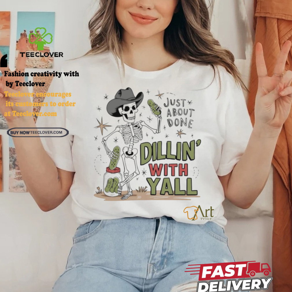 Skeleton just about done dillin with yall shirt1 is a must-have for any Funny who loves all things teejeep. These shirts typically feature popular Trenฤing Shirt characters, quotes, or logos, and come in a range of styles and colors to suit any taste. Some designs may even feature the dadโs favorite Trending or characters, making them a personalized and thoughtful gift.