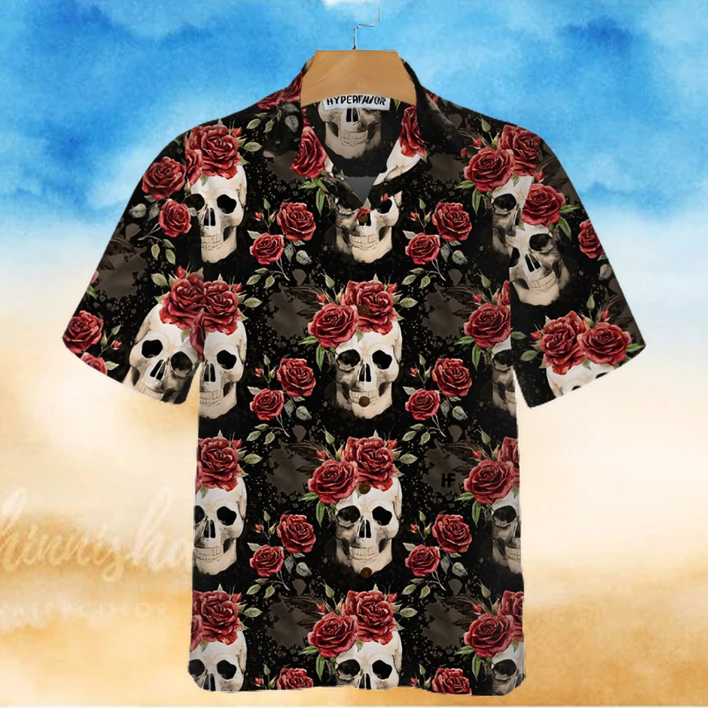 Best Skull Rose Vintage Hawaiian Shirt Red Roses Gothic Skull Shirt