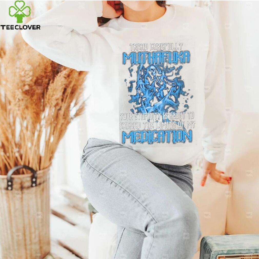 Skull Tread Carefully Muthafuka Your Stupidity Is About To Exceed The Limits Of My Medication Shirt