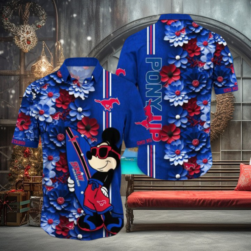 Best SMU Mustangs Hawaiian Shirt Mickey Love Surfing Trending Summer Gift