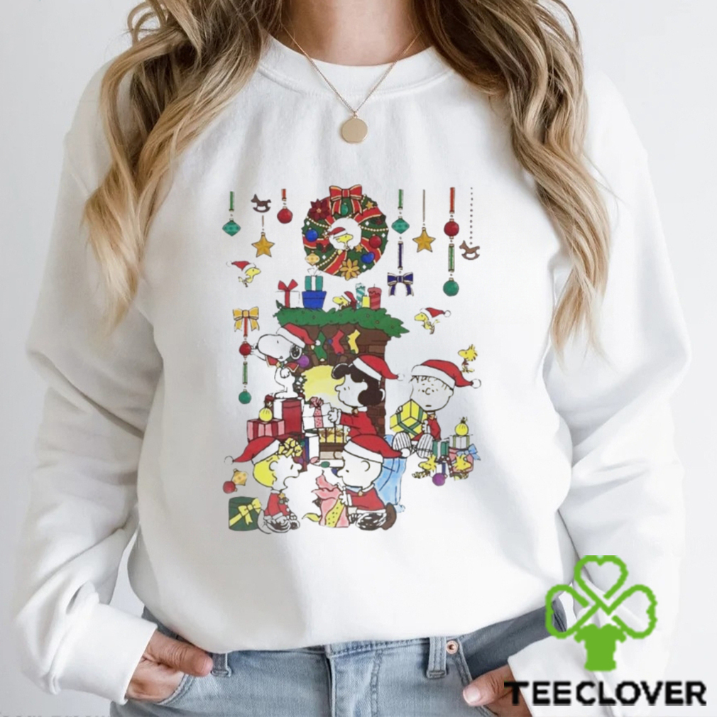 When Charlotte moved to England she brought the Snoopy And Friends Hat Santa Happy Merry Christmas Shirt. She invited both her family and all of the Royal Household. She set the yew branch up in one of the largest rooms at Kew Palace or Windsor Castle.She and her ladies-in-waiting dressed the bough. They lit candles and the whole Court gathered round and sang carols. The party ended with a distribution of gifts from the branch, which included such items as clothes, jewels, plate, toys and sweets. This was in 1761. It caused a stir because the aristocracy had never seen such a thing. In 1800, she decided to have a whole potted tree in drawing-room floor at Queenβs Lodge. She had a Christmas party for the children of all the principal families in Windsor. It was covered with candles, almonds and raisins in papers, fruits, toys, and bunches of sweetmeats. Each child was allowed to take home a portion of the sweets and a toy from the tree. The Earls and Dukes and Barons and other Peers copied this in their homes in the next few years.