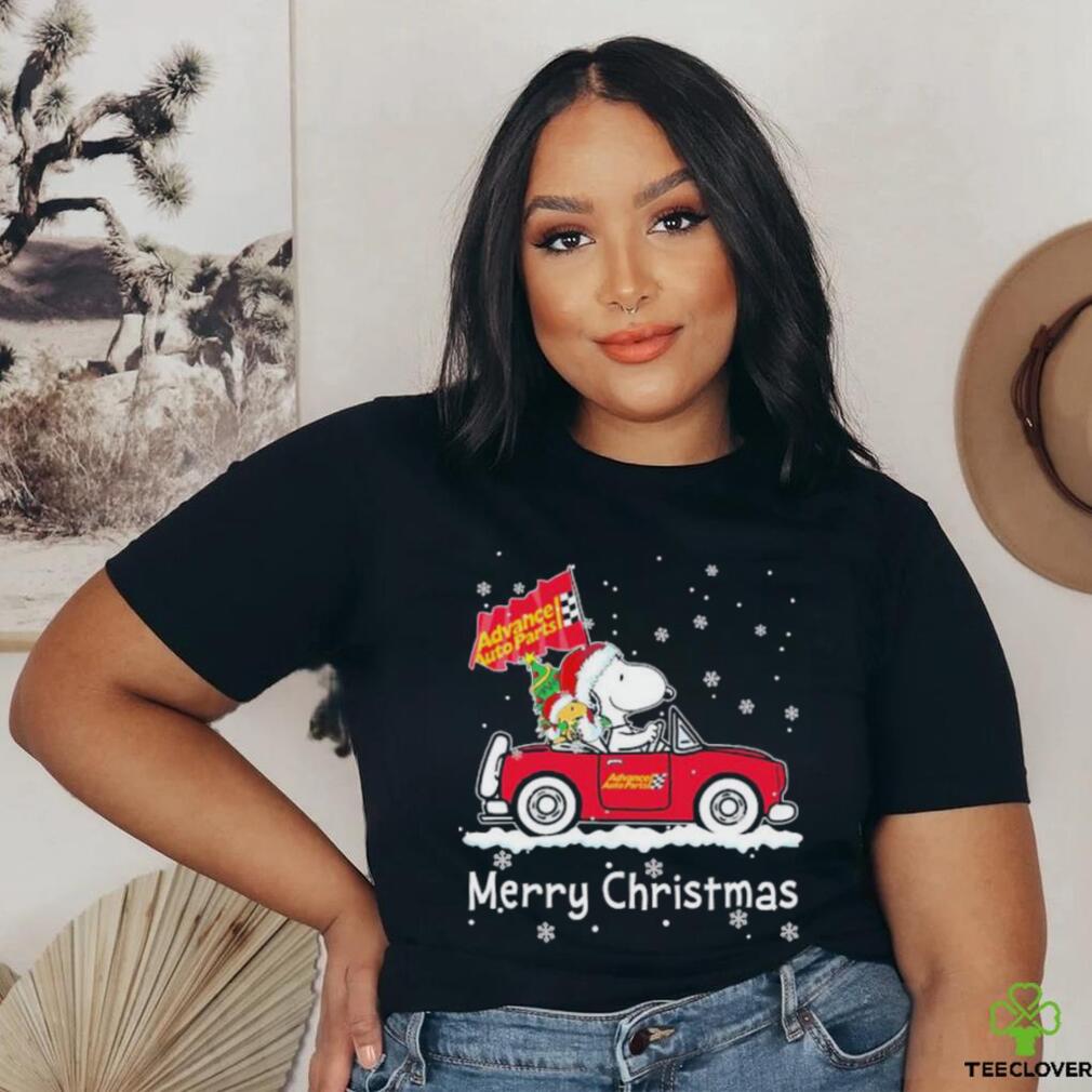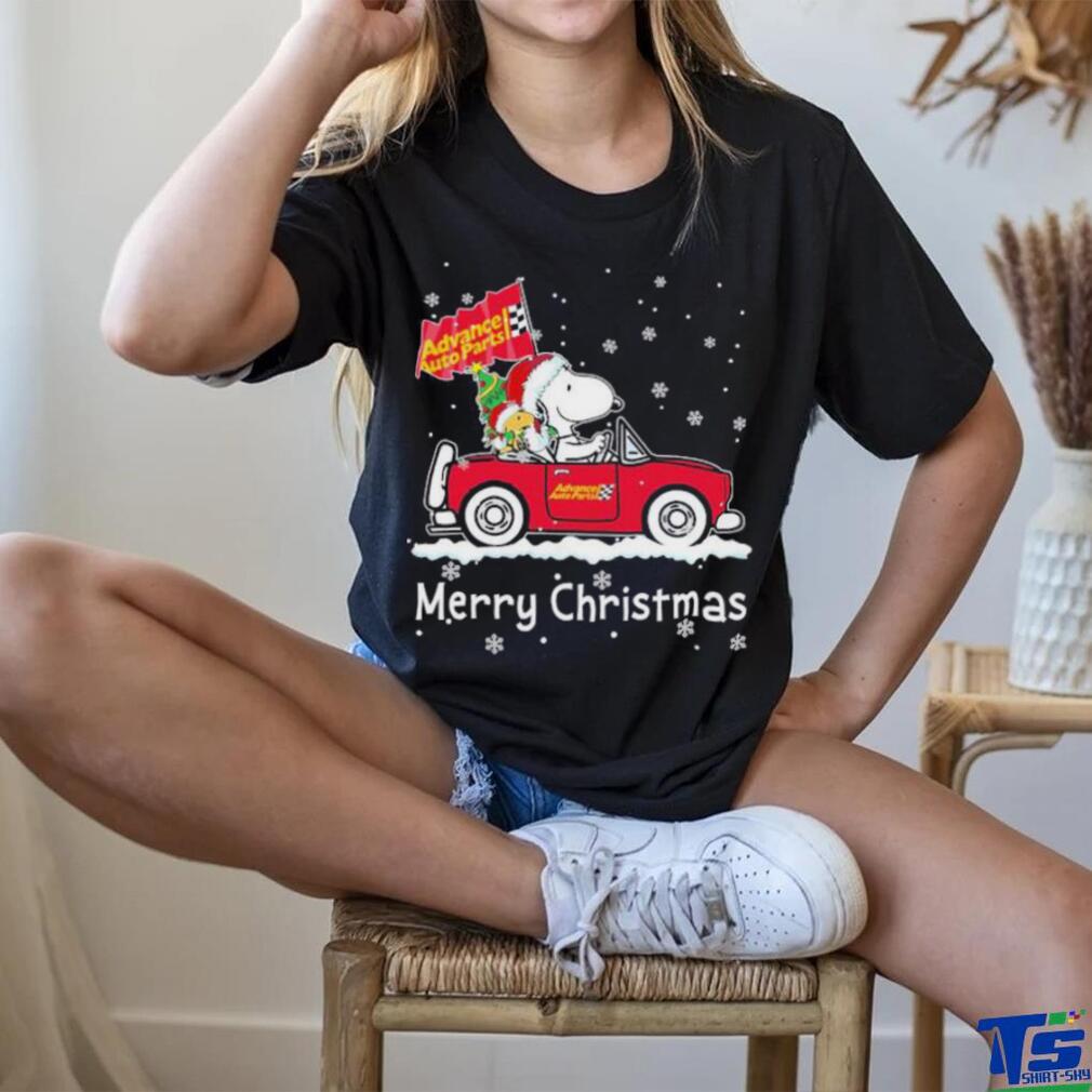 Best Snoopy and Woodstock drive car Advance auto parts merry christmas shirt