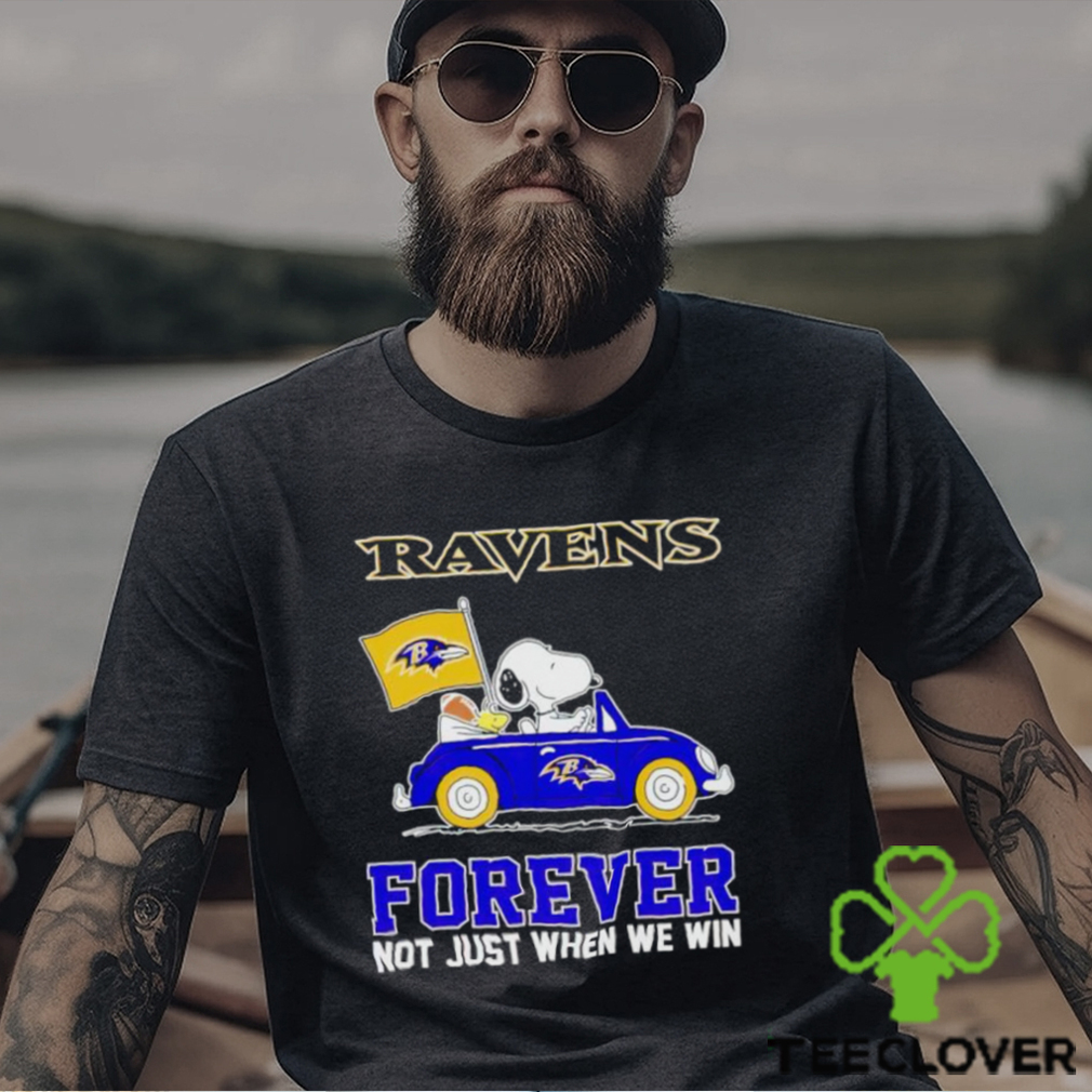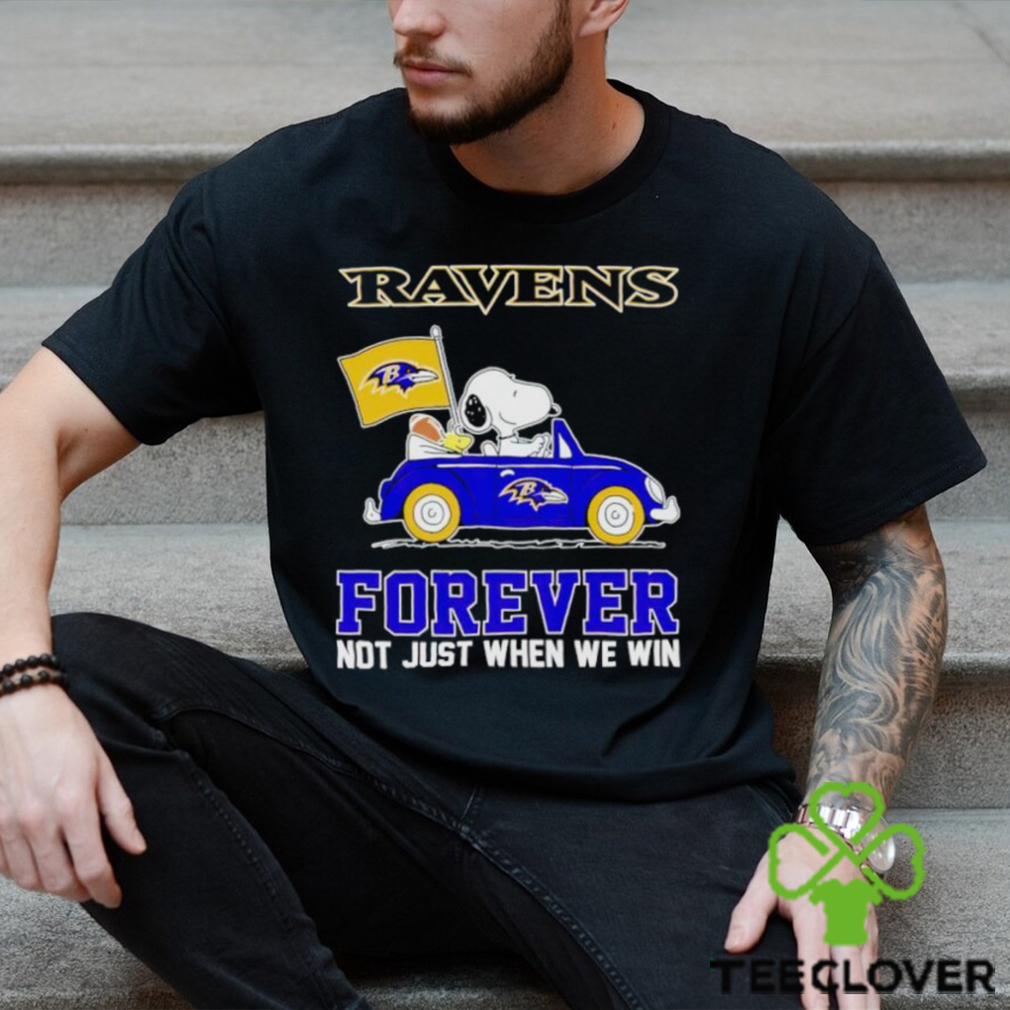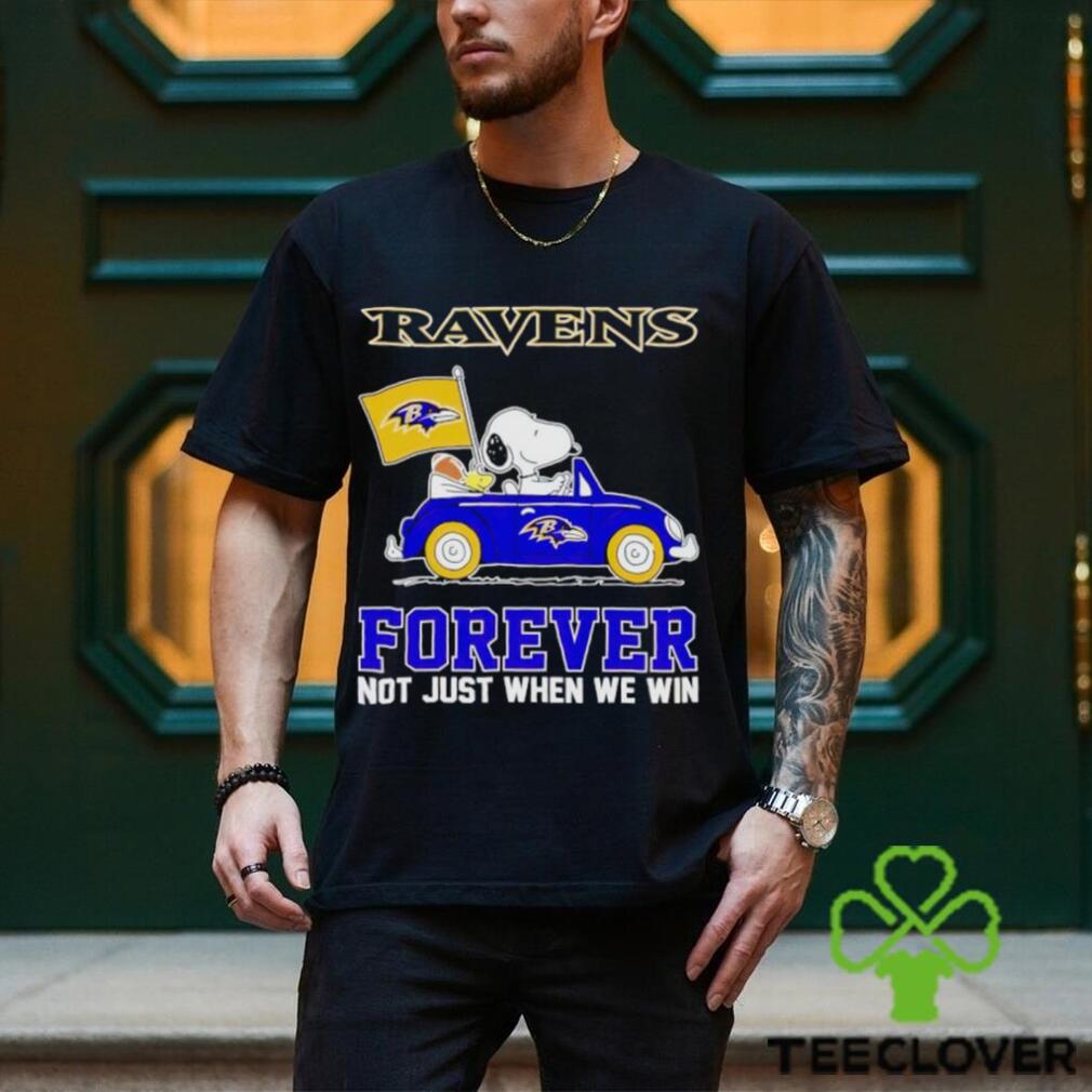Snoopy and Woodstock driving car Baltimore Ravens forever not just when we win shirt
