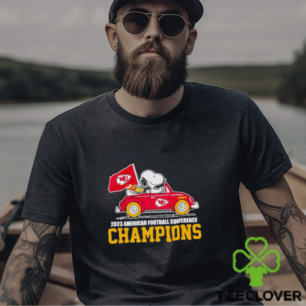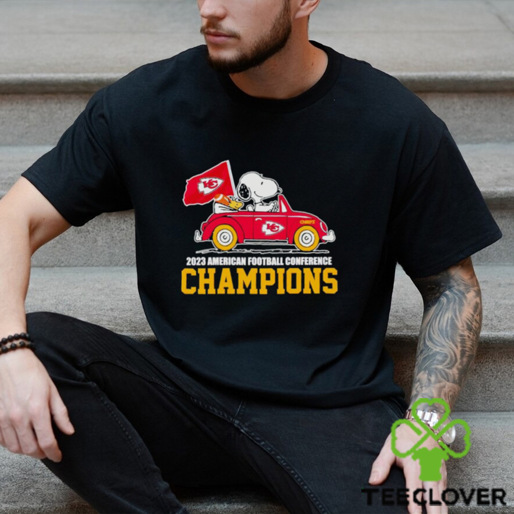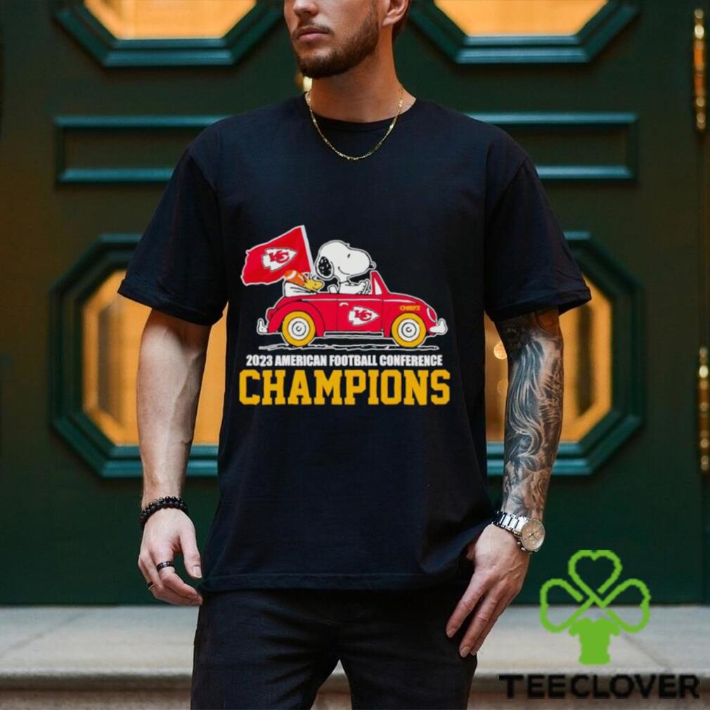()Snoopy and Woodstock driving car Kansas City Chiefs 2023 AFC Champions shirt hoodie, tank top, sweater and long sleeve t-shirt