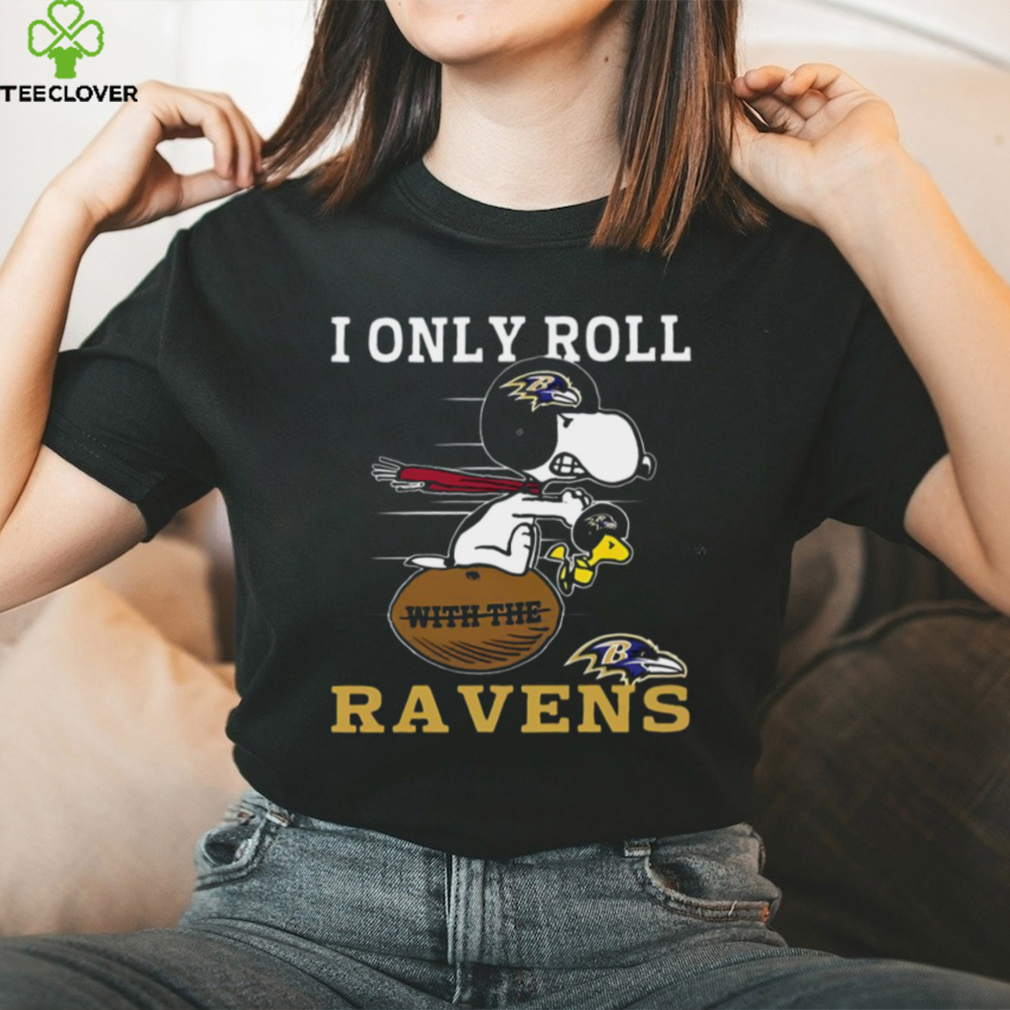 Snoopy And Woodstock I Only Roll With The Baltimore Ravens T shirt, Hoodie, Sweater, Vneck, Unisex and T-shirt