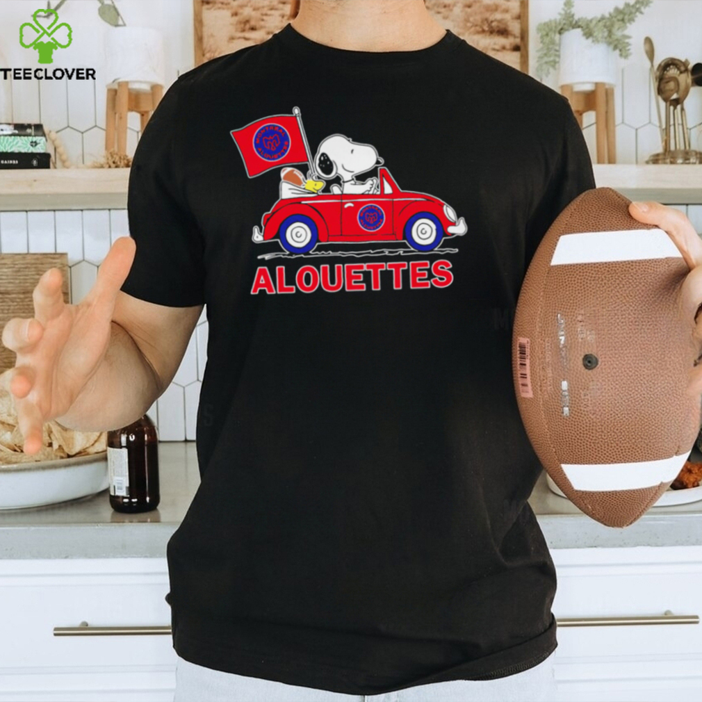 Best Snoopy drive a car Alouettes football flag logo gift shirt