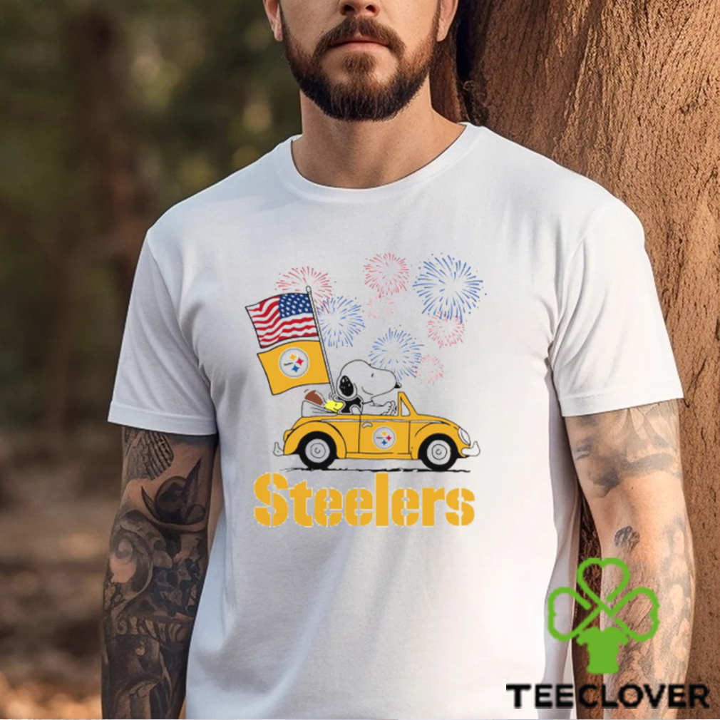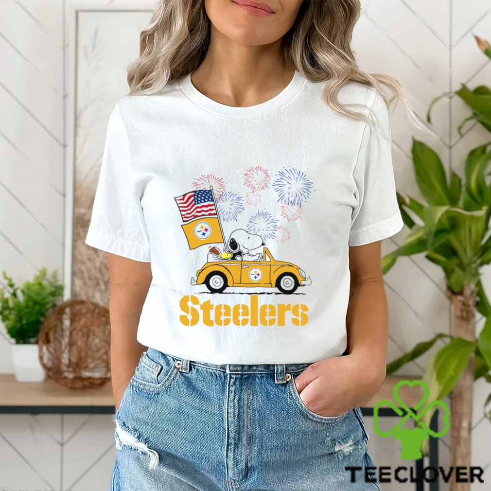 Durga Puja has always been a Snoopy Football Happy 4th Of July Pittsburgh Steelers Shirt of womanhood in Bengal; more so now, as the State has its first woman Chief Minister in Mamata Banerjee. Being a symbol of `woman power` herself, Ms Banerjee has received nearly 3,500 invitations to inaugurate Durga Puja marquees from across West Bengal. This shows that she is a true leader of the masses. All her supporters across Bengal want to share the festive spirit and celebrations with her. People want her to share their joy. She is a mass leader and yet she is like everybody`s neighbour. Demonstrating her will to protect her people yet again, the CM has decided that even though all government offices will be closed the government will stop functioning, she will have the same work load and may be more, during the festive days. The festive season will not be a time for respite for the other leaders or ministers of her government as well. Mamata Banerjee has already instructed them to return to their constituencies instead of travelling out of Kolkata so that they can establish better public relations. She has also asked them to use the pandals as platforms to connect more with the people.