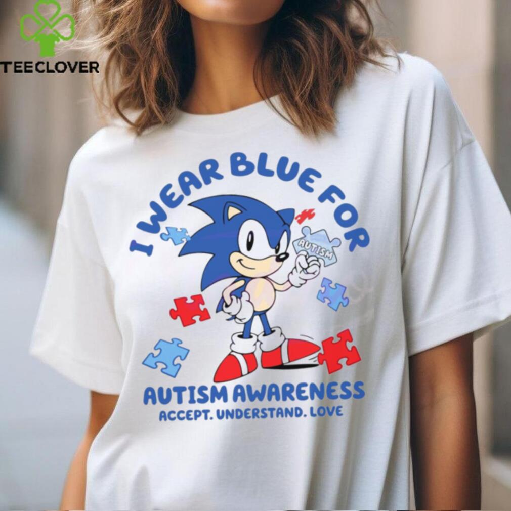 No! Itโs much too early for Sonic I Wear Blue For Autism Awareness shirt . I want to enjoy this fall (although it seems that fall has decided not to visit us this year) and each holiday as it comes. One year, ages ago, I put up the Christmas tree on Thanksgiving weekend and by the time Christmas came around, all the decorations were dusty and I was sick of looking at it..lol. That was a good lesson. Christmas, for me, is sparkling snow, pine trees (not maples turning gold and red) and a very special time, especially if you have family (cherish them because some day they will be gone). Itโs a time of selflessness and love and that โChristmas spiritโ which is incredible which takes hold of you.