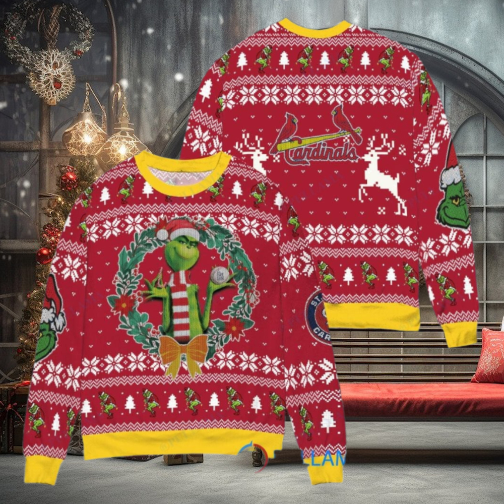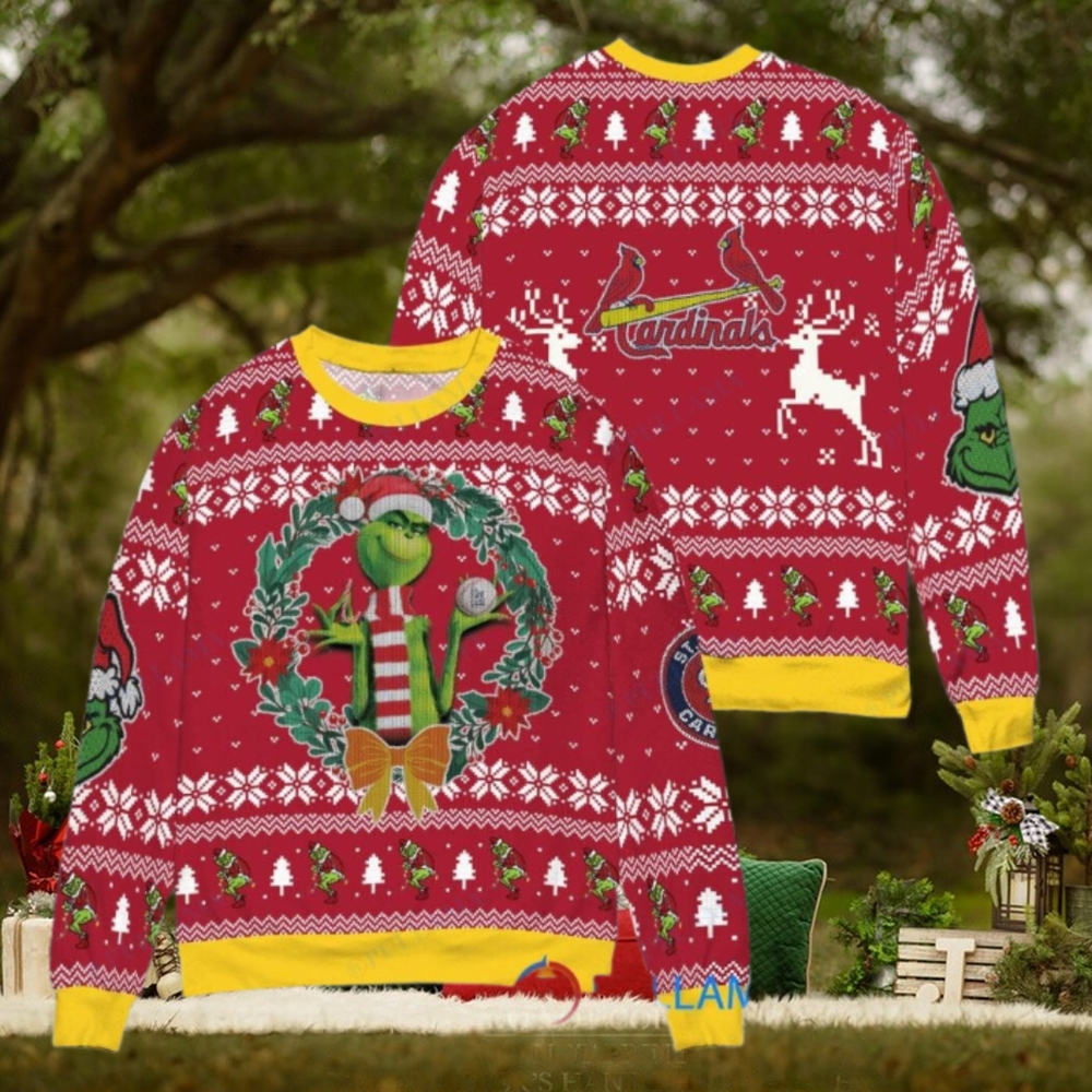 Best St.Louis Cardinals x Grinch Dr. Seuss How the Grinch Stole Christmas MLB with World Series Trophy Ugly Christmas Sweater Red