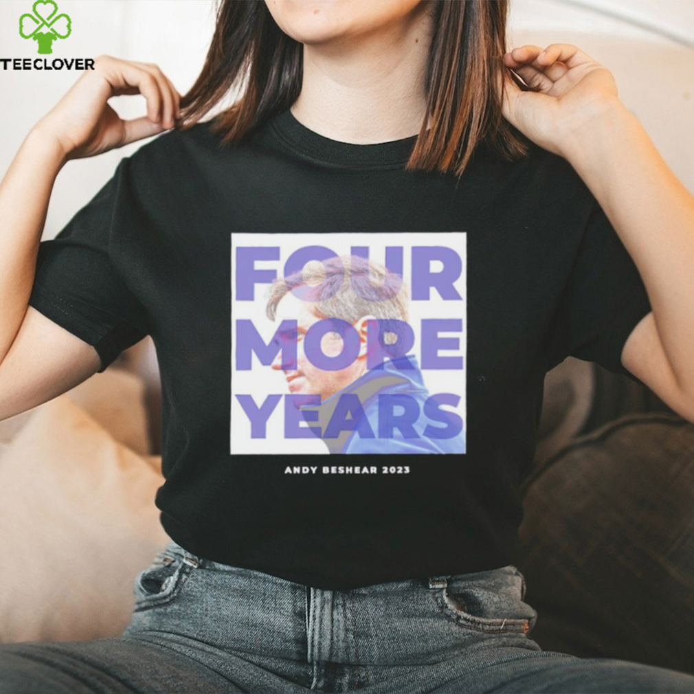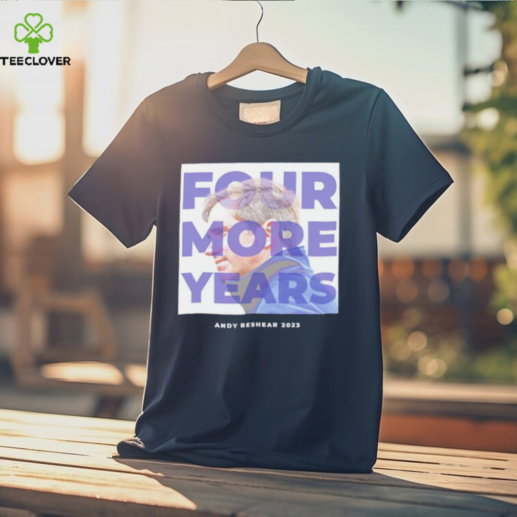 At the other outpost also all was finished. During this night we reached the Stacked four more years Andy Beshear 2023 shirt of the Tannu Ola and descended again into a valley covered with dense bushes and twined with a whole network of small rivers and streams. It was the headwaters of the Buret Hei. About one o’clock we stopped and began to feed our horses, as the grass just there was very good. Here we thought ourselves in safety. We saw many calming indications. On the mountains were seen the grazing herds of reindeers and yaks and approaching Soyots confirmed our supposition. Here behind the Tannu Ola the Soyots had not seen the Red soldiers. We presented to these Soyots a brick of tea and saw them depart happy and sure that we were “Tzagan,” a “good people.