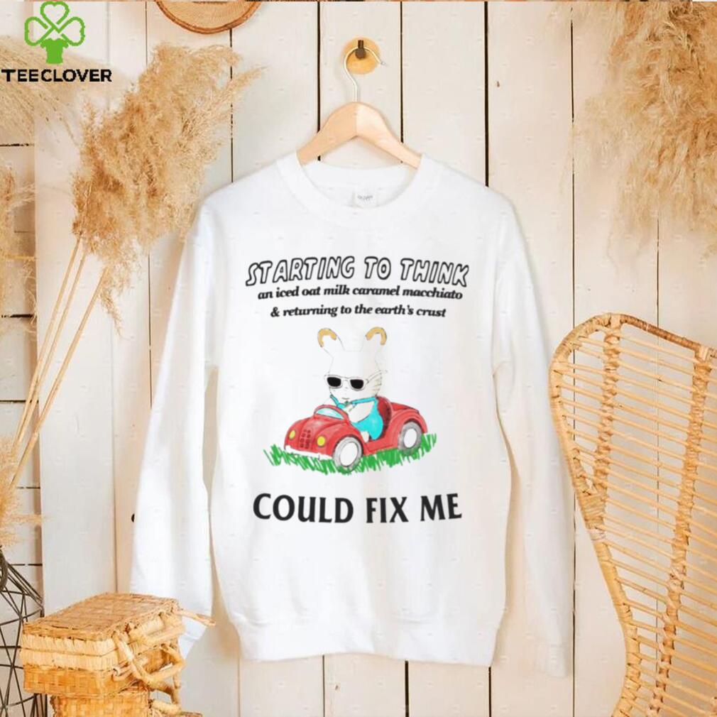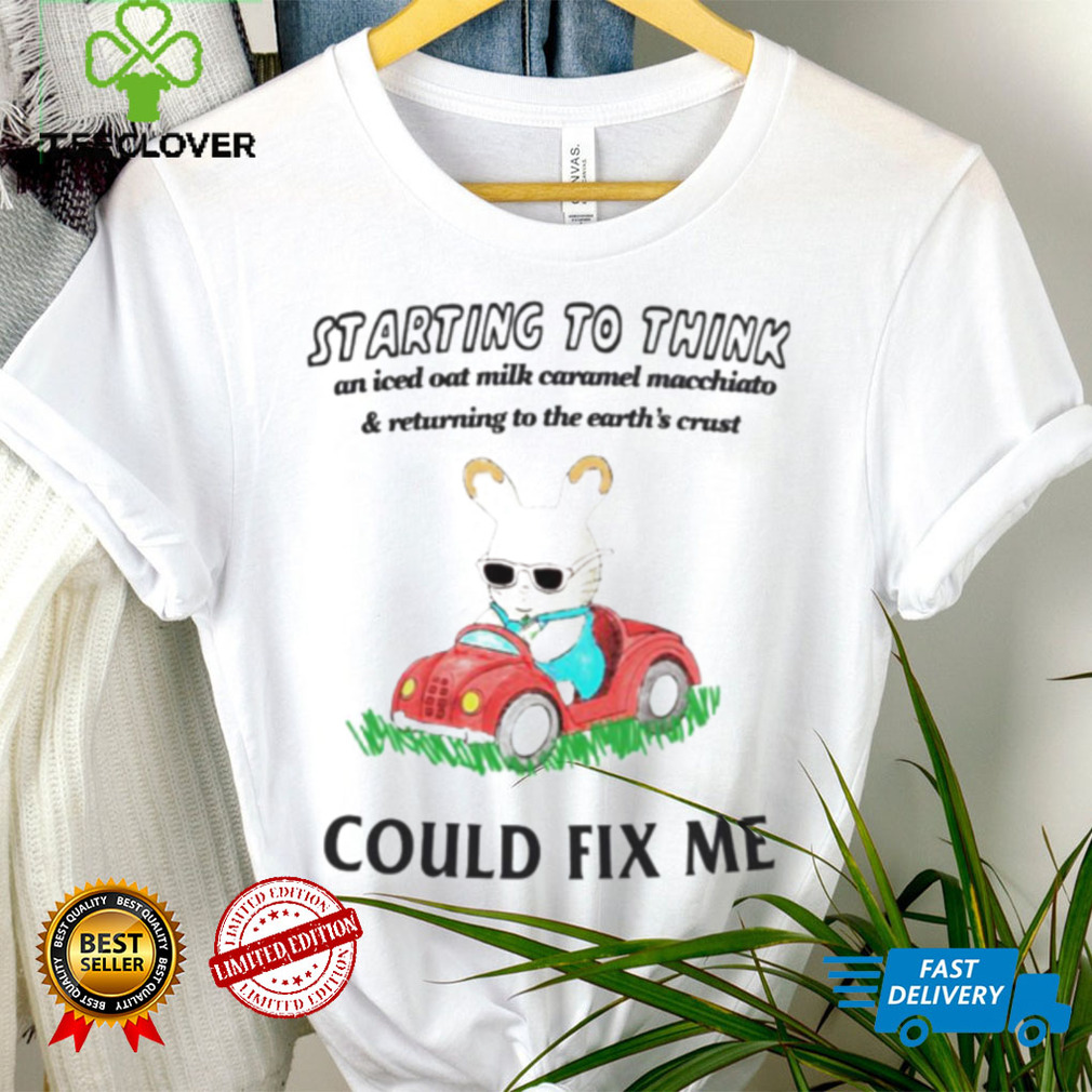 Starting to think an iced oat milk caramel macchiato and retur.ning to the earth’s crust could fix me shirt