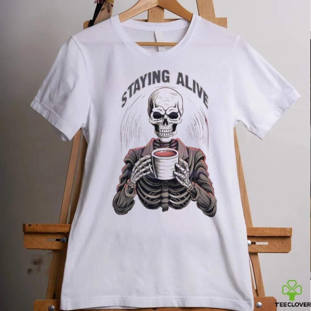 Best Staying Alive Skull Coo PNG Funny Skeleton Coffee Lover Shirt