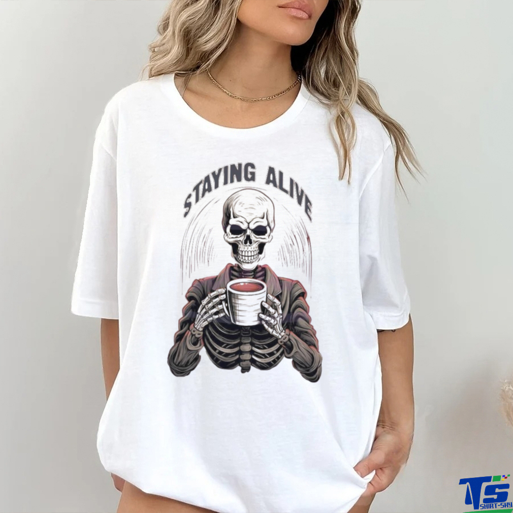 ()Staying Alive Skull Coo PNG Funny Skeleton Coffee Lover Shirt, Hoodie, Sweater, Vneck, Unisex and T-shirt