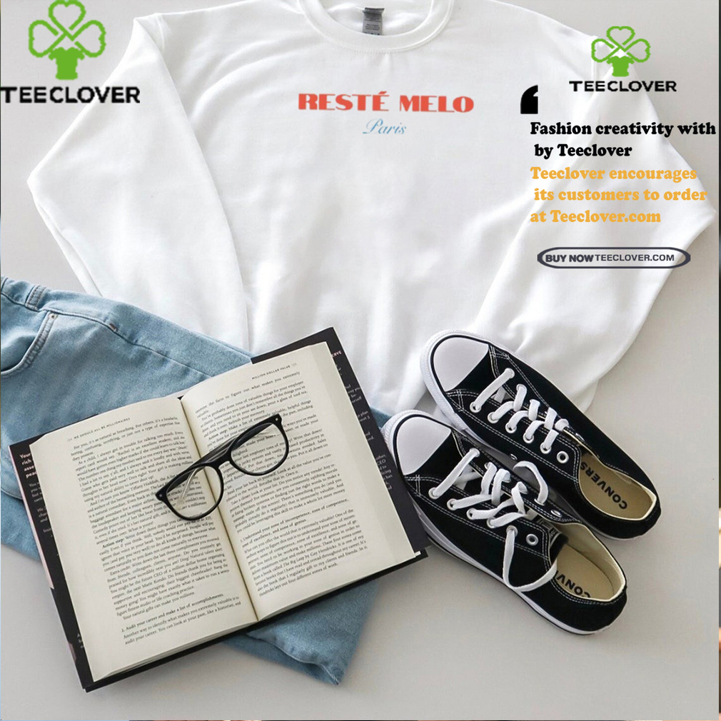 One morning I was in the kitchen, Stayme7o Reste Melo Tee Shirt ready to leave for work, when I heard a clattering noise in the front hall. I ignored it, but it got louder. I went to investigate and saw my cat Little Bit had dragged my mp3 player and earbuds to the stairs and was pushing them down. She pushed them the rest of the way down so they were at my feet and then she sat and looked up at me. I normally take them with me every morning, but had forgotten them on my dresser that day.