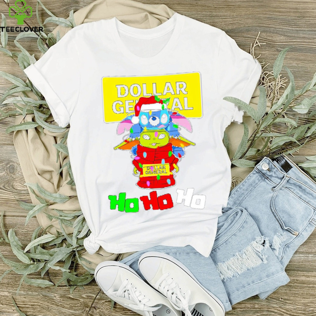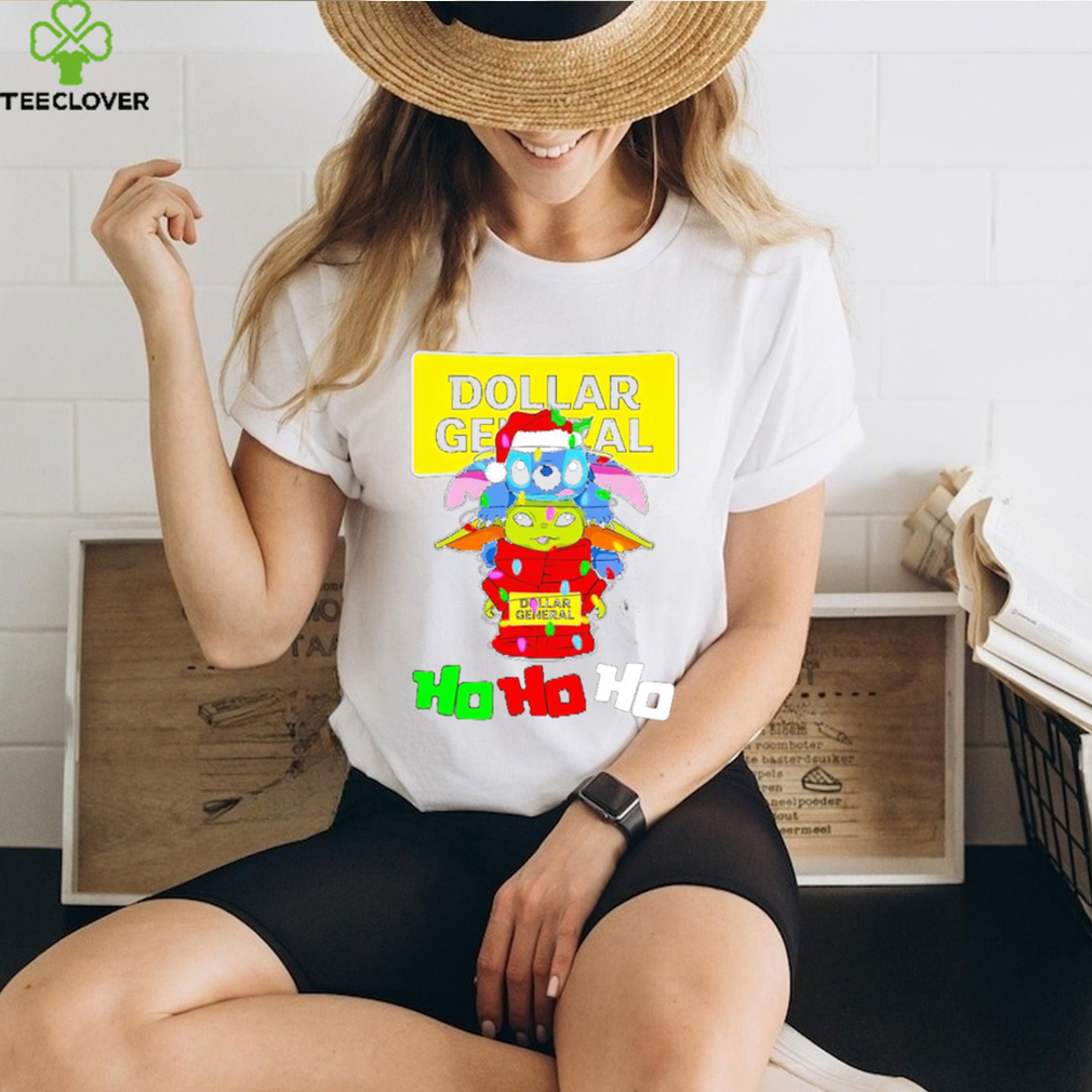 ()Stitch and baby Yoda Dollar General ho ho ho Christmas shirt, Hoodie, Sweater, Vneck, Unisex and T-shirt