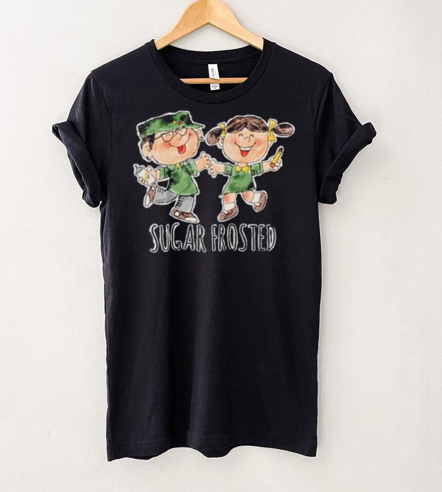(The Bolshevik) sentinel slowly raised his head. But just at this moment the Sugar Frosted T shirt body of my friend rose up and blanketed the fire from me and in a twinkling the feet of the sentinel flashed through the air, as my companion had seized him by the throat and swung him clear into the bushes, where both figures disappeared. In a second he re-appeared, flourished the rifle of the Partisan over his head and I heard the dull blow which was followed by an absolute calm. He came back toward me and, confusedly smiling, said: “It is done. God and the Devil! When I was a boy, my mother wanted to make a priest out of me. When I grew up, I became a trained agronome in order. . . to strangle the people and smash their skulls? Revolution is a very stupid thing!” And with anger and disgust he spit and began to smoke his pipe.