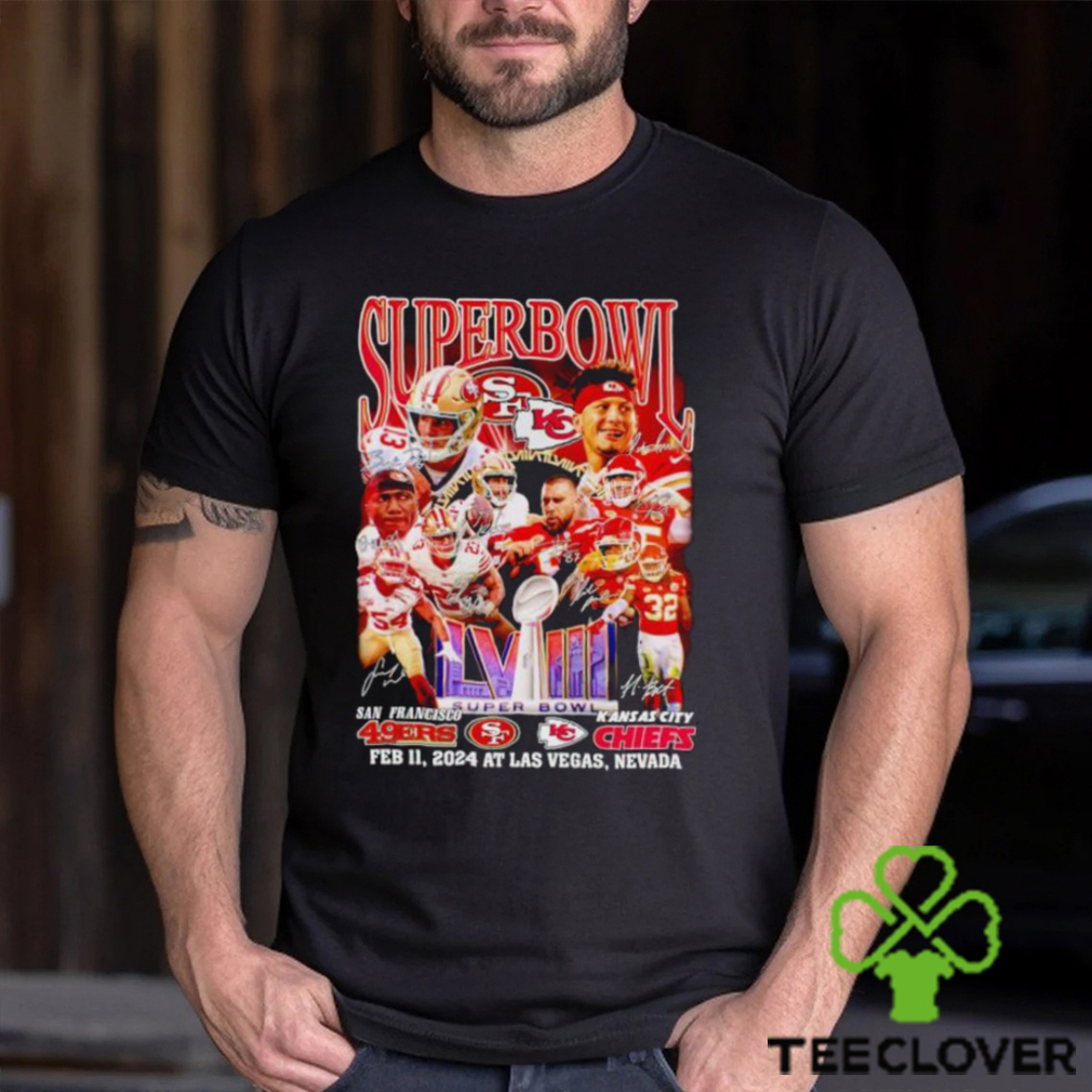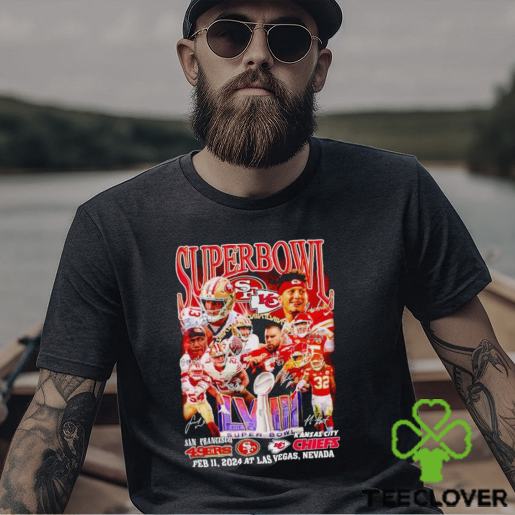 ()Super Bowl LVIII San Francisco 49ers vs Kansas City Chiefs Feb 11 2024 at Las Vegas Nevada signatures shirt hoodie, tank top, sweater and long sleeve t-shirt