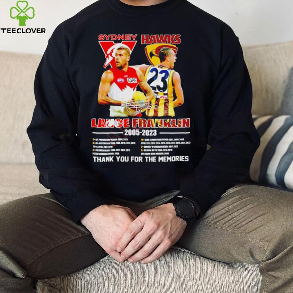 ()Sydney Lance Hawks Franklin 2005 2023 thank you for the memories signature shirt