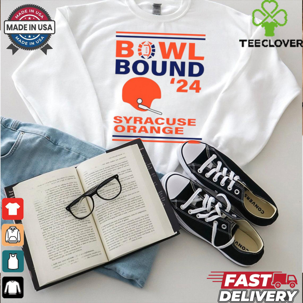 Does wearing a bra help you ease your gender dysphoria even when you are trying to Syracuse Orange Bowl Bound 2024 Shirt yourself as a man? Would a bra still help you feel like yourself even if it wasn’t stuffed? An A cup sports bra that is still in your size might allow you to be true to yourself without too much risk of detection.My advice to trans folks is always to transition as soon as possible and as quickly as possible. That’s what I needed. It may not be what you need. If wearing a bra under your boy clothes meets your needs, or it’s all you can manage right now, then do that.