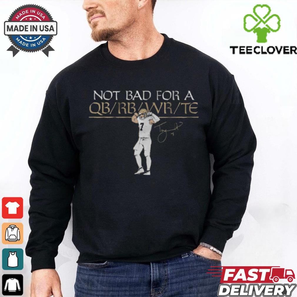 This is my basic day to day outfit anyway so nobody would even bat an eye about it. And being that I’m an Taysom Hill_ Flex QB Shirt and work literally from my couch, I’ve no need for nice clothes and I’m expected to be eccentric, anyway, if I did need to attend a classier event. They’d just assume I was making a statement or some such craziness.T-shirt bras are the workhorses of most lingerie wardrobes. Many women choose to wear a t-shirt bra daily because it provides hidden support under most outfits. In addition to their versatility, t-shirt bras are designed for a plethora of breast shapes and bra sizes.