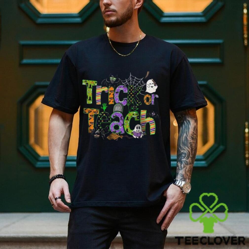 ()Teacher Halloween Shirt Trick Or Teach Doodle Letters Hoodie Classic hoodie, tank top, sweater and long sleeve t-shirt