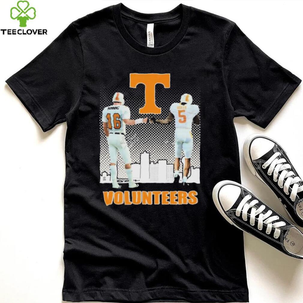 Tennessee Volunteers Peyton Manning And Hendon Hooker Knoxville Skyline Signatures Shirt